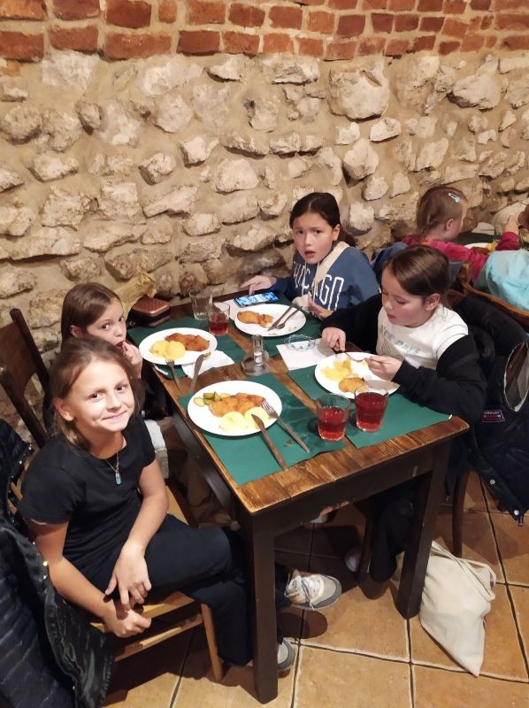 Dnia 28 października 2022r. uczniowie klas trzecich naszej szkoły, wraz z opiekunami p. L. Jedziniak, p. W. Nowak, p. A. Nowak, brali udział w wycieczce edukacyjno – integracyjnej, dofinansowanej z ministerialnego programu: „Poznaj Polskę”. Naszą podróż po Krakowie rozpoczęliśmy od podziwiania Wisły. Z panią przewodnik udaliśmy się na Zamek Królewski, zwiedzaliśmy Katedrę Wawelską – miejsce koronacji królów Polski, jak również krypty, gdzie pochowano wielu władców. Mieliśmy okazję obejrzeć dzwon Zygmunta i posłuchać historii związanej z tym obiektem. Kolejnym punktem wycieczki była stara jama smoka wawelskiego, w której poznaliśmy legendę o Smoku Wawelskim oraz podziwialiśmy pomnik współczesnego ziejącego ogniem smoka. Zamek zrobił na nas ogromne wrażenie. Potem ruszyliśmy na rynek. Tam zwiedziliśmy Kościół Mariacki z pięknym ołtarzem Wita Stwosza, mogliśmy ujrzeć ceremonię otwarcia ołtarza. Wysłuchaliśmy także sławnego hejnału. Pani przewodnik zapoznała nas z legendą o dwóch braciach, którzy budowali wieżę kościoła. Kościół zachwycił nas swoimi misternymi zdobieniami. Następnym przystankiem były Sukiennice, w których oglądaliśmy pięknie wykonane ozdoby i zakupiliśmy pamiątki dla bliskich. Podczas wycieczki przechodziliśmy obok Domu Jana Matejki oraz Pałacu Biskupiego, nierozerwalnie związanego z papieżem Janem Pawłem II. Pod oknem z wizerunkiem Ojca Świętego, dowiedzieliśmy się więcej o Janie Pawle II. Odwiedziliśmy również Żywe Muzeum Obwarzanka, w którym poznaliśmy proces produkcji obwarzanka i mieliśmy okazję własnoręcznie wykonać wypiek. Po zakończeniu zwiedzania udaliśmy się na pyszny obiad. W drodze powrotnej dzieliliśmy się naszymi wrażeniami.