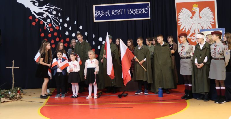 W dniu 10.11. 2022 roku odbyła się w naszej szkole uroczysta akademia upamiętniająca 104 rocznicę odzyskania Niepodległości przez Polskę.