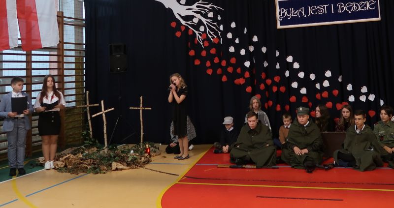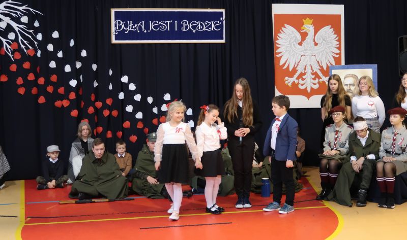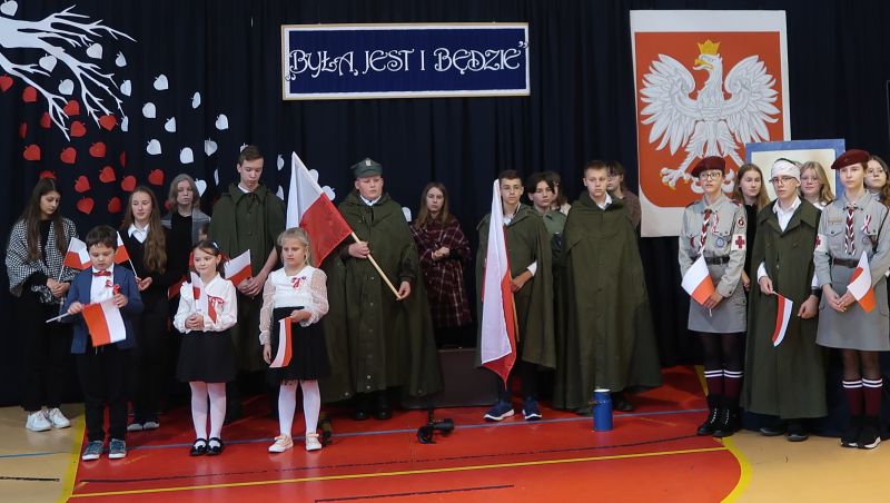 Następnie uczniowie klas 1-8 zaangażowani w akademię recytowali wiersze, śpiewali patriotyczne pieśni oraz odgrywali wybrane sceny związane z historią walk o niepodległość naszej Ojczyzny. Atmosfera przejęcia i refleksji towarzyszyła całej społeczności szkolnej.
