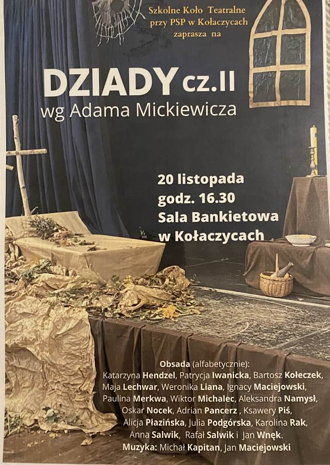 Szkolne Koło Teatralne zaprasza na "Dziady cz.II" Adama Mickiewicza