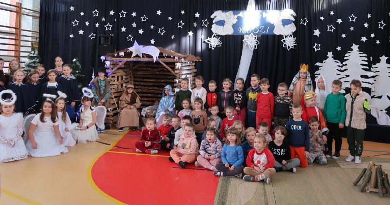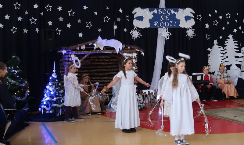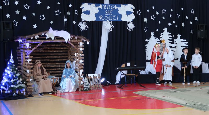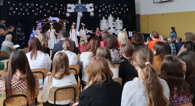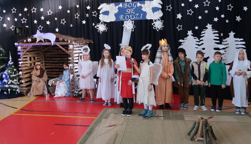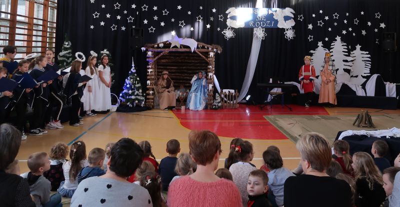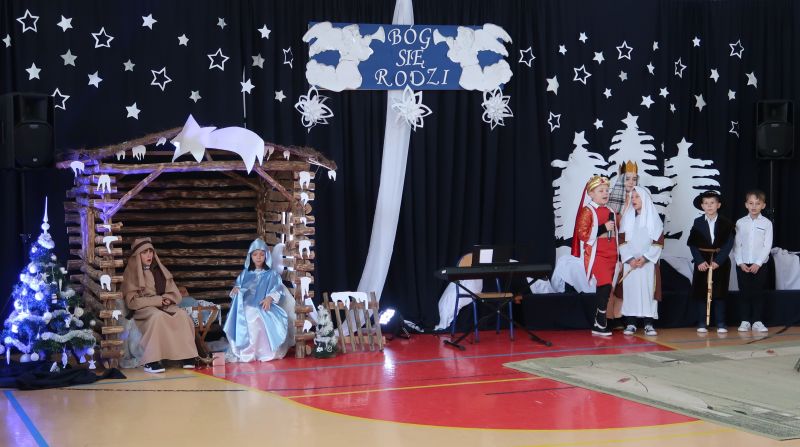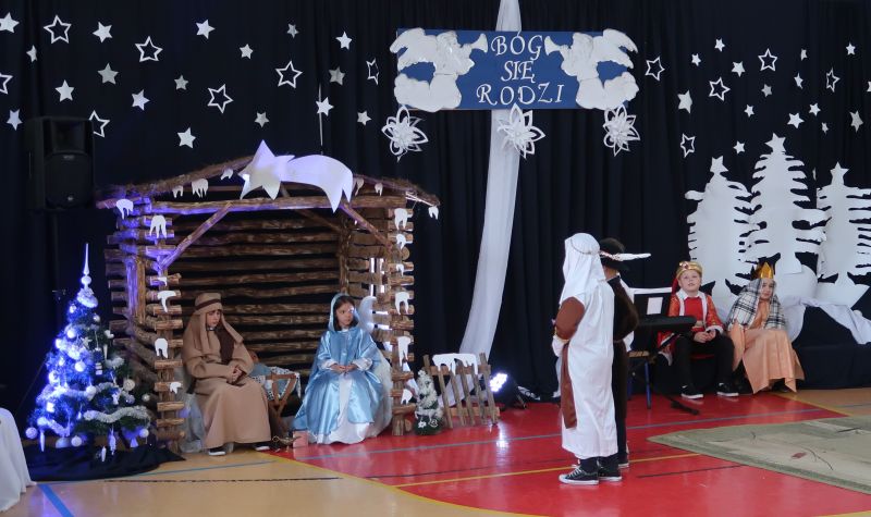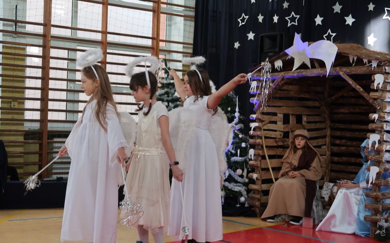 22 grudnia 2022r. w naszej szkole odbyły się „Jasełka”. Uczniowie klas trzecich wprowadzili całą społeczność szkolną w świąteczną atmosferę, przypominając w ten sposób wydarzenie sprzed ponad dwóch tysięcy lat, kiedy to w Betlejem, w ubogiej stajence, narodziło się Boże Dzieciątko. Uczniowie wcielili się w rolę Maryi i Józefa, pasterzy, aniołów oraz trzech króli, przybywających złożyć pokłon Jezusowi. Uroku inscenizacji dodał układ taneczny, zaprezentowany przez aniołki, a także kolędy i pastorałki, które napełniły wszystkich świąteczną radością i sprawiły, że poczuliśmy magię zbliżających się świąt.