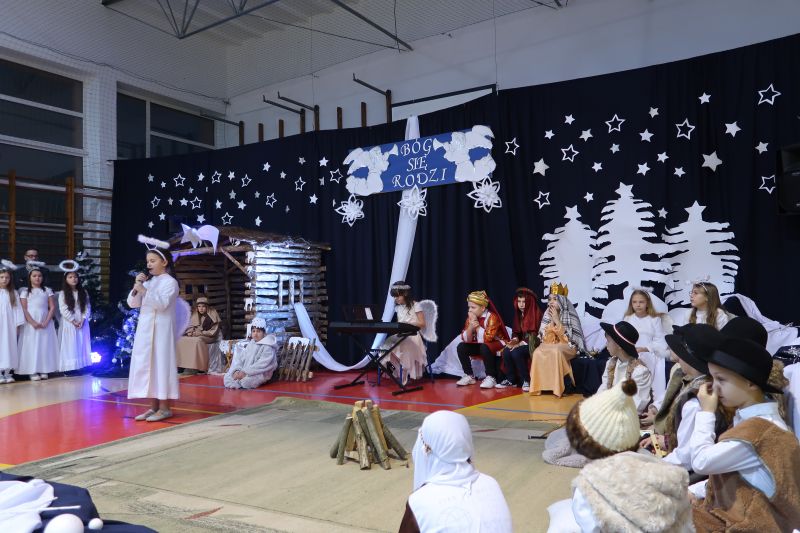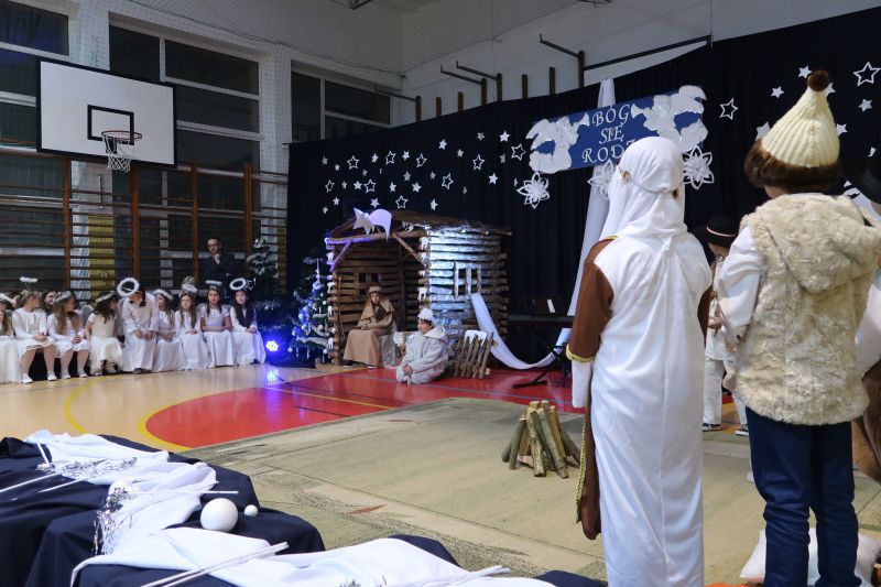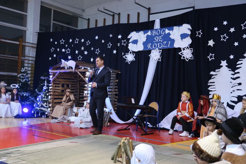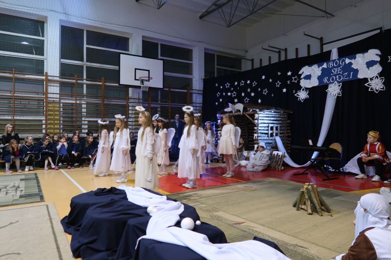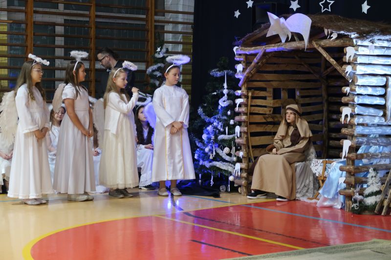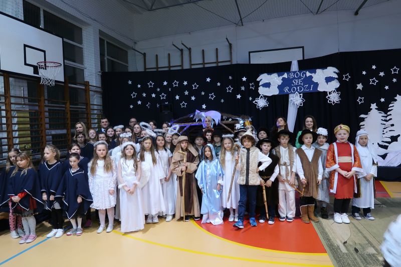 5 grudnia 2023r. uczniowie klas trzecich, przy oprawie muzycznej szkolnego chóru, zaprezentowali przygotowane „Jasełka” swoim Babciom i Dziadkom. Przedstawienie wywołało wiele pozytywnych emocji. Było pięknie, a czasami wzruszająco. Występ został ciepło przyjęty przez zebranych i nagrodzony gromkimi brawami. Na zakończenie pan dyrektor Adam Iwanicki złożył wszystkim zebranym serdeczne życzenia.