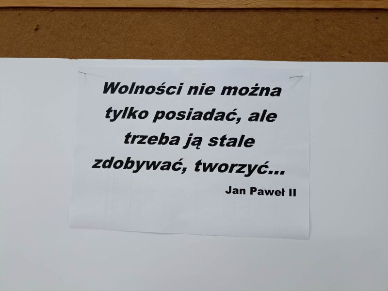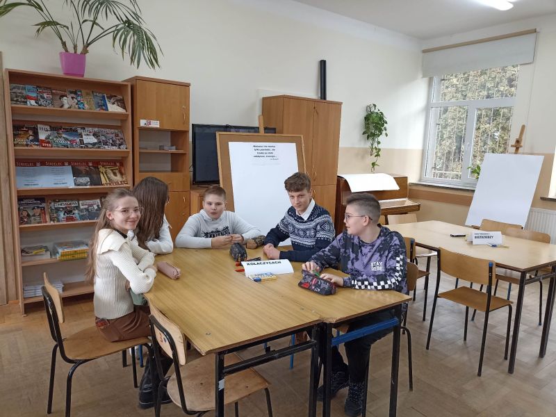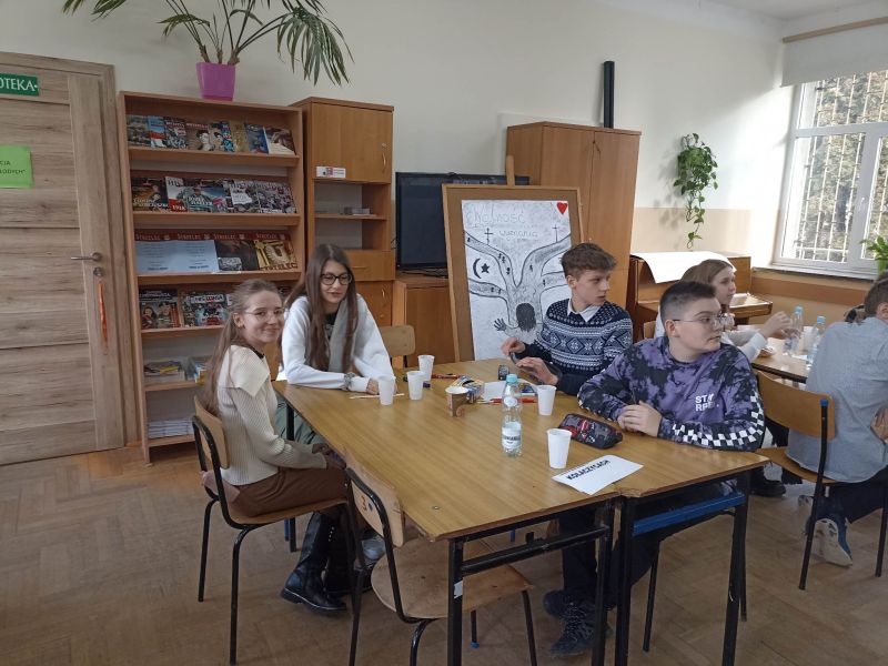 W czwartek 12.01.2023r. pięcioosobowa grupa młodzieży z kl. VIIIa i VIIIb wzięła udział w warsztatach edukacyjno– profilaktycznych, które odbyły się w Liceum Ogólnokształcącym w Kołaczycach. Hasłem przewodnim spotkania były słowa Św. Jana Pawła II „ Wolności nie można tylko posiadać, ale trzeba ją stale zdobywać, tworzyć…”. Na początku spotkania Pani pedagog przybliżyła uczniom tematykę warsztatów i poprowadziła dyskusję na temat różnych wymiarów wolności. Później każdy zespół szkolny przygotował przesłanie, które wyrażało ich własną opinię, zachowując przy tym szacunek do odmienności zdania drugiego człowieka. W kolejnym etapie spotkania wszystkie grupy miały za zadanie wykonać pracę plastyczną na jeden z wylosowanych tematów. Młodzież bardzo zaangażowała się w wykonanie zadania, powstały ciekawe prace. Podsumowaniem warsztatów było nagranie wspólnego spotu promującego szerokorozumiane pojęcie wolności. Wszyscy uczestnicy spotkania otrzymali upominki oraz pyszny poczęstunek.