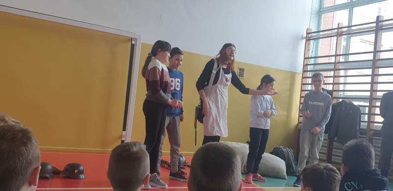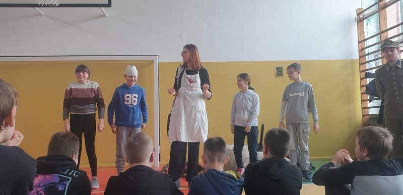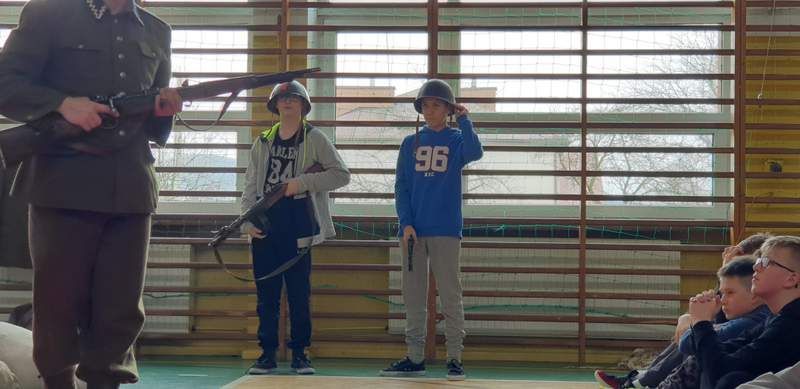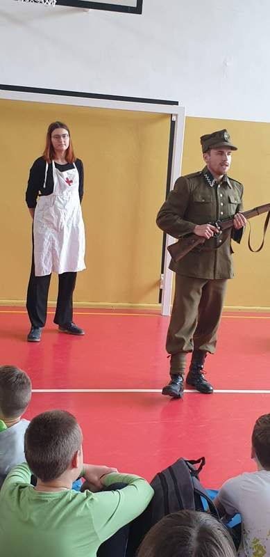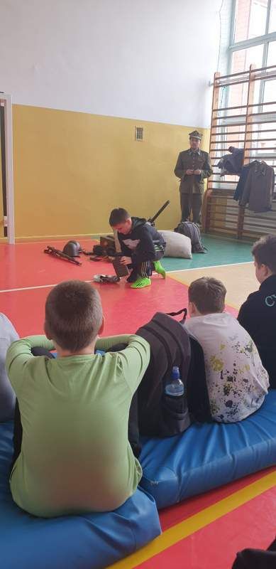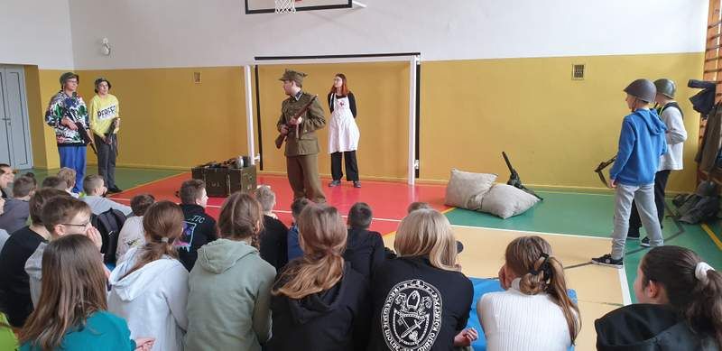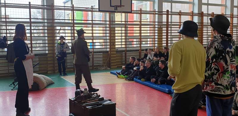 odbyła się prezentacja historyczna grupy Rekonstrukto pt. "wrzesień 39". Podczas prezentacji omówiona została barwa i broń polskiego żołnierza w czasie tzw. wojny obronnej roku 1939.Prezenterzy w sposób zwięzły i obrazowy przedstawili tło i sytuację geopolityczną II Rzeczpospolitej na dzień przed wybuchem II wojny światowej i konieczność obrony kraju zarówno przed agresją hitlerowską jak i sowiecką. W trakcie pokazu zaprezentowano podstawowy ekwipunek żołnierski szeregowca i podoficera oraz elementy musztry w której to uczniowie chętnie brali udział. Po pokazie każdy uczeń mógł samodzielnie zapoznać się z bezpiecznymi replikami ówczesnej broni i elementami ekwipunku. Pokaz był dla uczniów atrakcyjną lekcją żywej historii i wzbudził żywe zainteresowanie zarówno uczniów jak i nauczycieli. W przyszłości grupa Rekonstrukto z pewnością odwiedzi nas z równie ciekawym pokazem.
