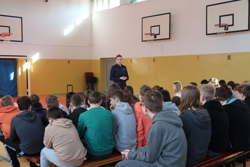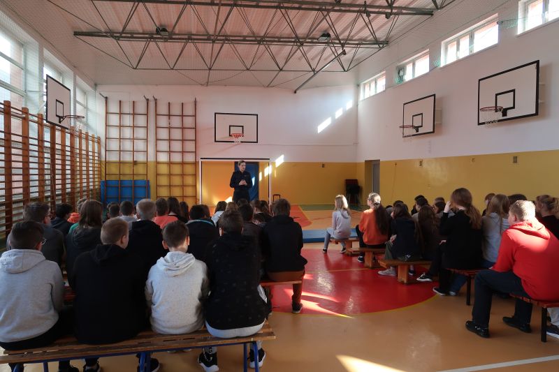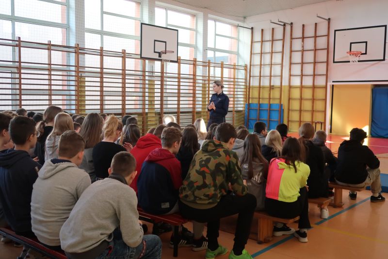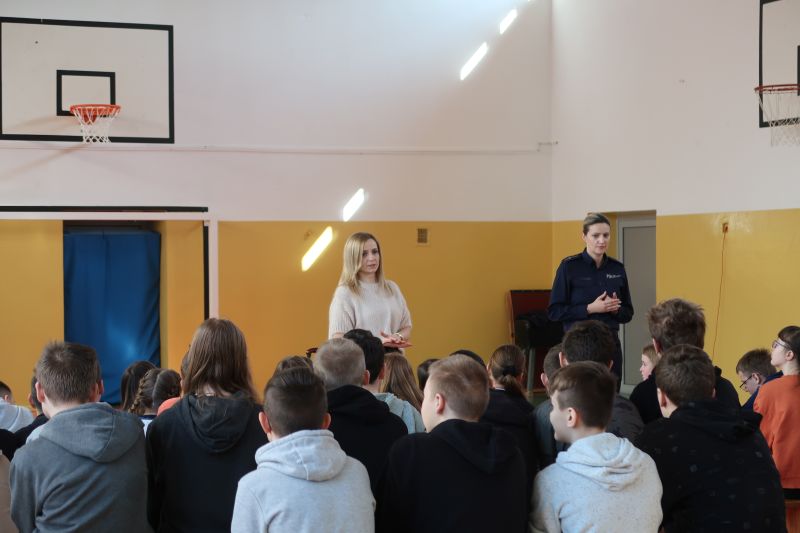 1 marca 2023r. w naszej szkole odbyło się spotkanie uczniów klas VI-VIII z przedstawicielem Komisariatu Policji w Jaśle z mł. asp. Barbarą Pawłowską- specjalistą ds. przestępczości nieletnich. Celem wizyty było przeprowadzenie rozmów z uczniami na temat bezpieczeństwa i odpowiedzialności prawnej nieletnich oraz cyberprzemocy. Pani B. Pawłowska przytaczała przykłady wielu nieodpowiedzialnych zachowań, za które młodzież może ponieść odpowiedzialność karną, a także jak takim sytuacjom przeciwdziałać. Uczniowie wykazali duże zainteresowanie podejmowanymi tematami. Spotkanie zorganizowała: p. M. Liszka