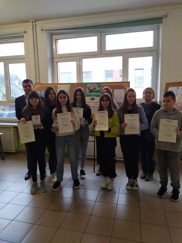 Dnia 9.03.2023r. odbyło się uroczyste wręczenie nagród uczniom biorącym udział w konkursach: CZYTELNIK MIESIĄCA,