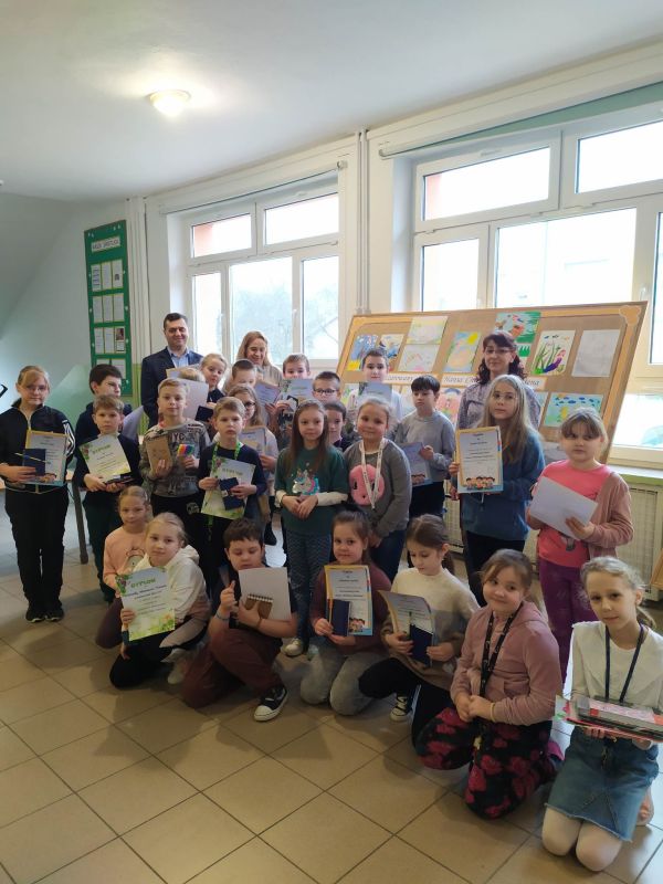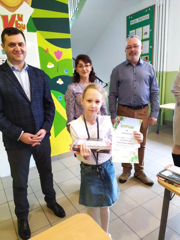 Wszyscy uczestnicy, zarówno konkursu literackiego jak też plastycznego , otrzymali z rąk Pana Dyrektora pamiątkowe dyplomy oraz atrakcyjne nagrody.