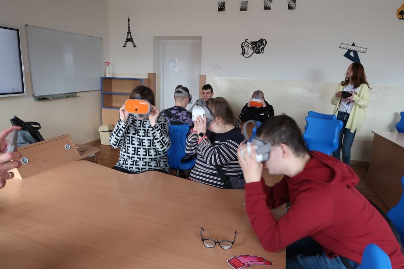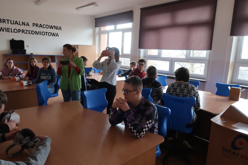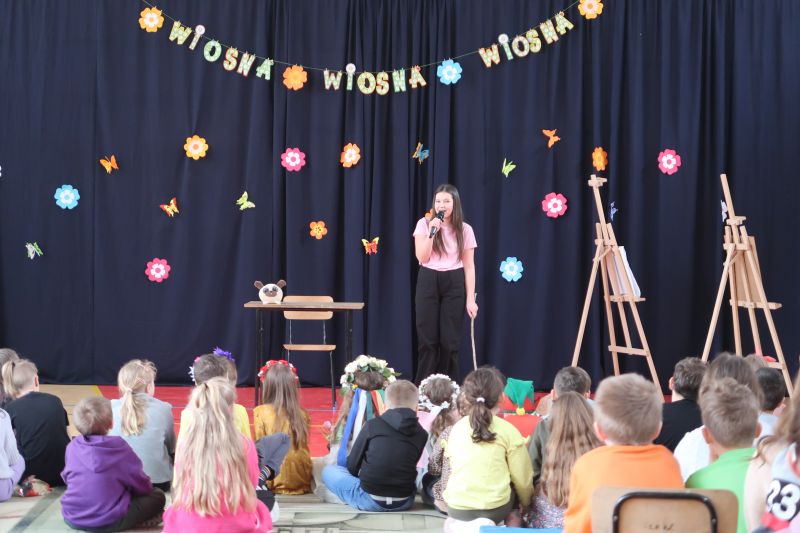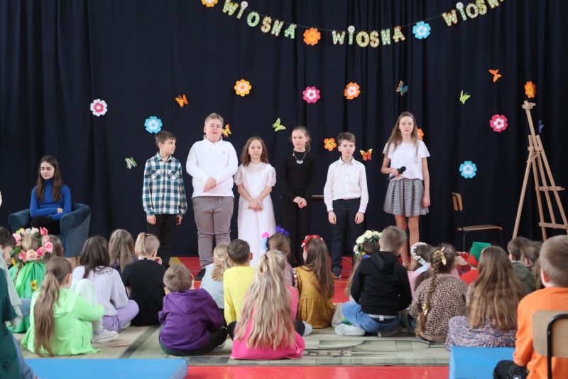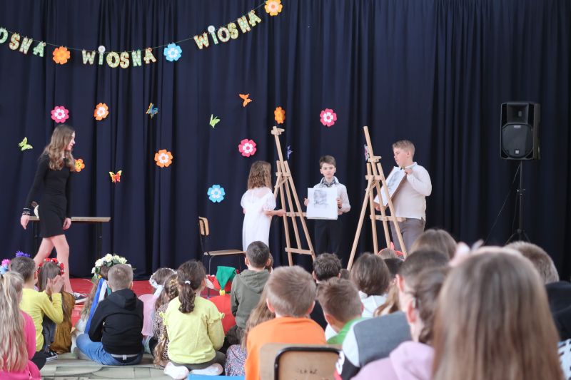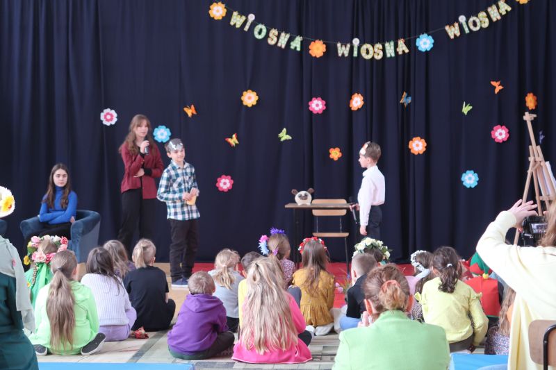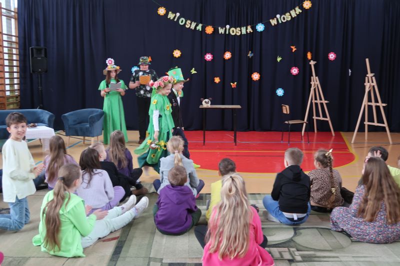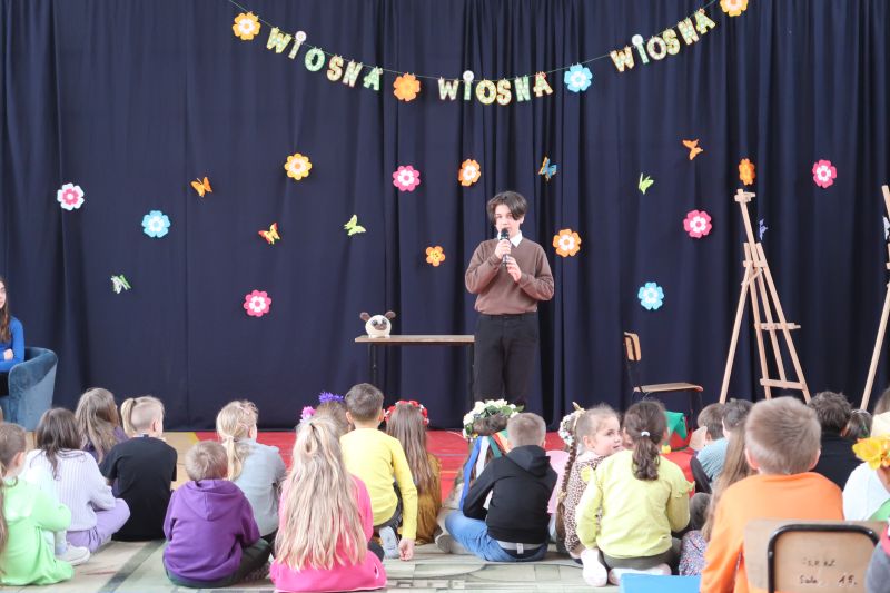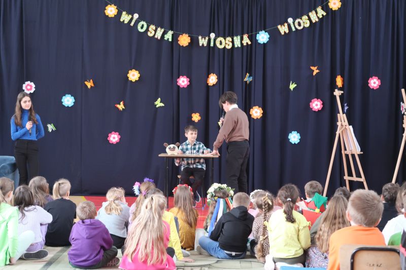 Wspólne spotkanie rozpoczęło się od powitania naszych gości przez Pana Dyrektora Adama Iwanickiego, który krótko przybliżył idę obchodzonego święta. Następnie na świetlicy szkolnej odbyły się warsztaty plastyczne związane tematycznie z pierwszym dniem wiosny oraz zbliżającymi się świętami wielkanocnymi. Piękne prace gości powstawały w obecności uczniów naszej szkoły i umilone były słodkim poczęstunkiem. W dalszej części programu przybyli obejrzeli występ zespołu Mażoretek „Migotki”, który wzbudził dużo pozytywnych emocji. Zaproszeni goście zachwyceni byli również zajęciami w wirtualnej pracowni wieloprzedmiotowej, gdzie mogli doświadczyć niesamowitych wrażeń podczas oglądania modeli i obrazów w rozszerzonej rzeczywistości 3D przy użyciu okularów VR, a także przenieść się do innego, całkowicie wirtualnego wymiaru podczas oglądania filmu „Podwodna przygoda”.