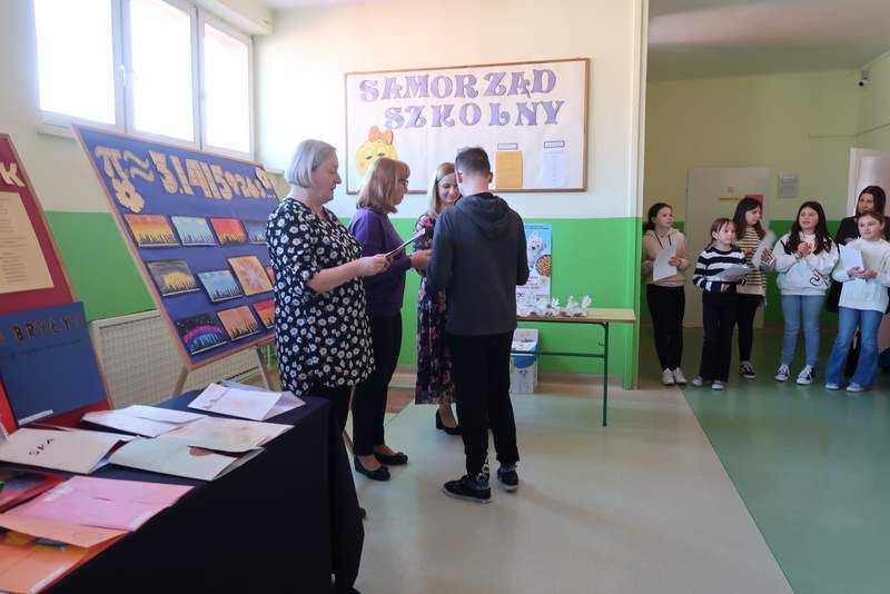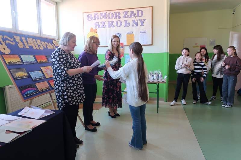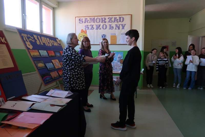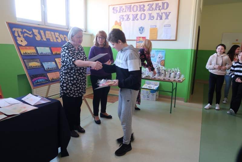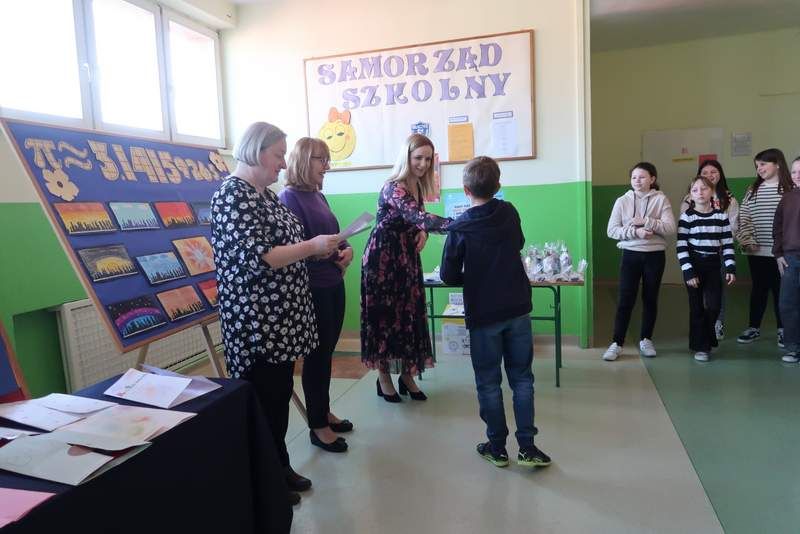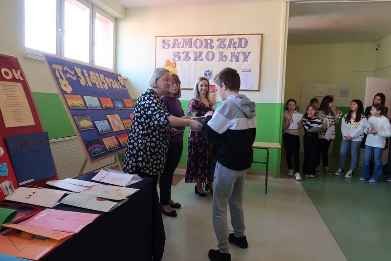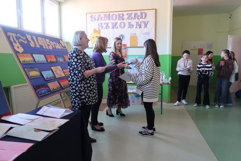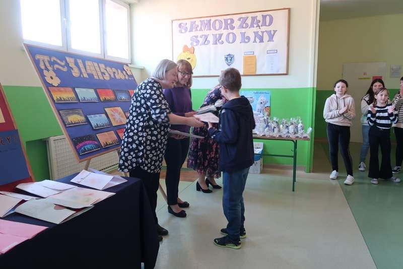 Po wręczeniu nagród za najciekawsze lapbooki pani Barbara Kopacz poinformowała zebranych, że w ogólnopolskim konkursie „Epickie Pi” I miejsce w kategorii Minecraft zajął uczeń naszej szkoły Jakub Żygłowicz z klasy 6a. Kuba oraz pozostali uczniowie biorący udział w tym konkursie : Maciej Czech i Mateusz Krajewski z klasy 6a, Ania Mordel, Radek Wnęk i Patrycja Iwanicka z klasy 6b oraz Damian Wnęk z klasy 8b otrzymali z rąk pani Dyrektor Alicji Namysł dyplomy i pamiątkowe nagrody.