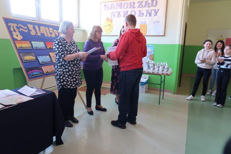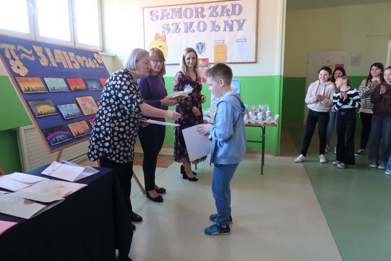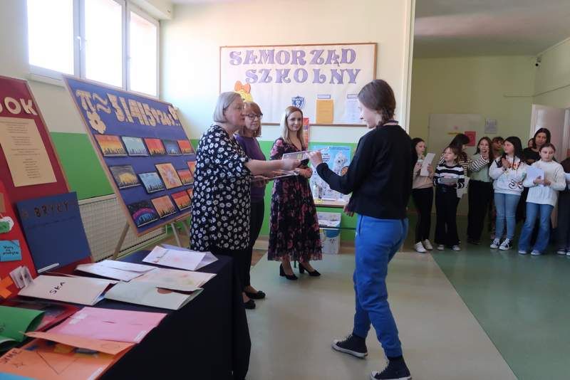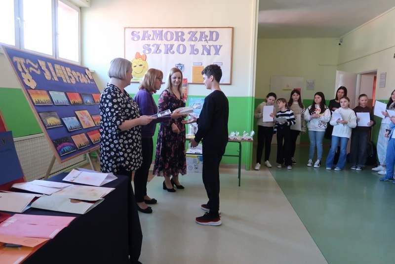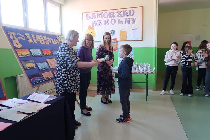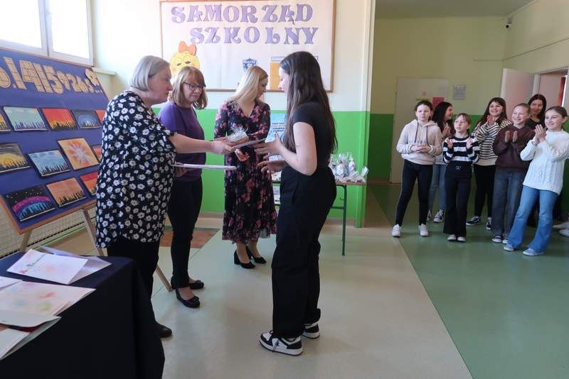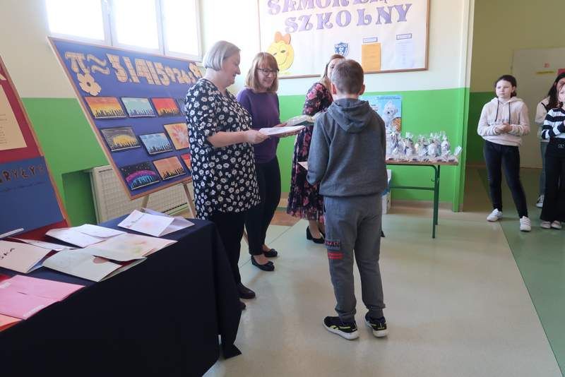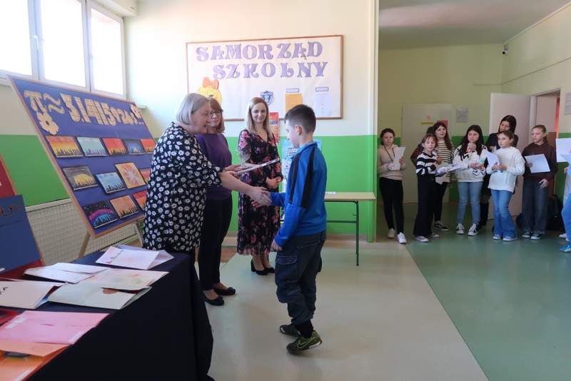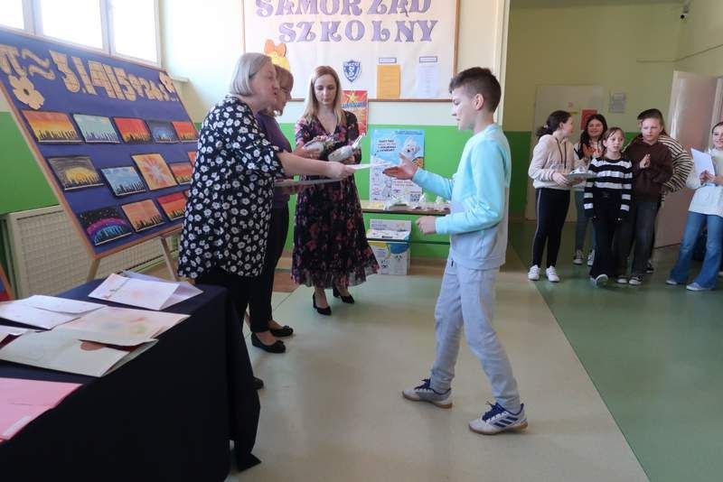 Po wręczeniu nagród za najciekawsze lapbooki pani Barbara Kopacz poinformowała zebranych, że w ogólnopolskim konkursie „Epickie Pi” I miejsce w kategorii Minecraft zajął uczeń naszej szkoły Jakub Żygłowicz z klasy 6a. Kuba oraz pozostali uczniowie biorący udział w tym konkursie : Maciej Czech i Mateusz Krajewski z klasy 6a, Ania Mordel, Radek Wnęk i Patrycja Iwanicka z klasy 6b oraz Damian Wnęk z klasy 8b otrzymali z rąk pani Dyrektor Alicji Namysł dyplomy i pamiątkowe nagrody.