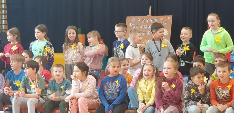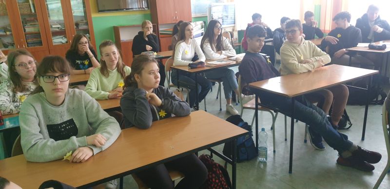 W dniu 19 kwietnia 2023 r w 80 rocznice wybuchu powstania w gettcie warszawskim uczniowie naszej szkoły przypięli papierowe Żonkile, aby uczcić pamięci uczestników tych wydarzeń.