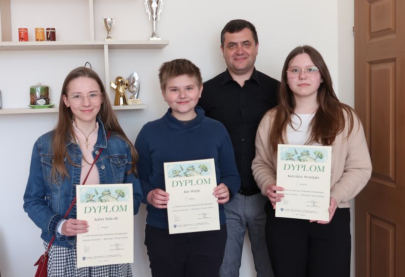 Serdecznie gratulujemy laureatom – ANI, KAROLINIE i JANKOWI, naszym zdolnym ósmoklasistom, którzy zaprezentowali na tym konkursie bardzo wysoki poziom wiedzy i umiejętności.