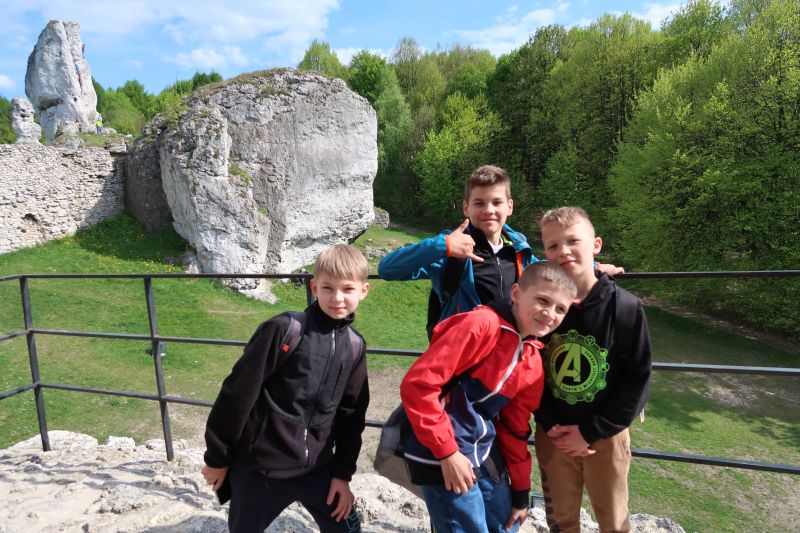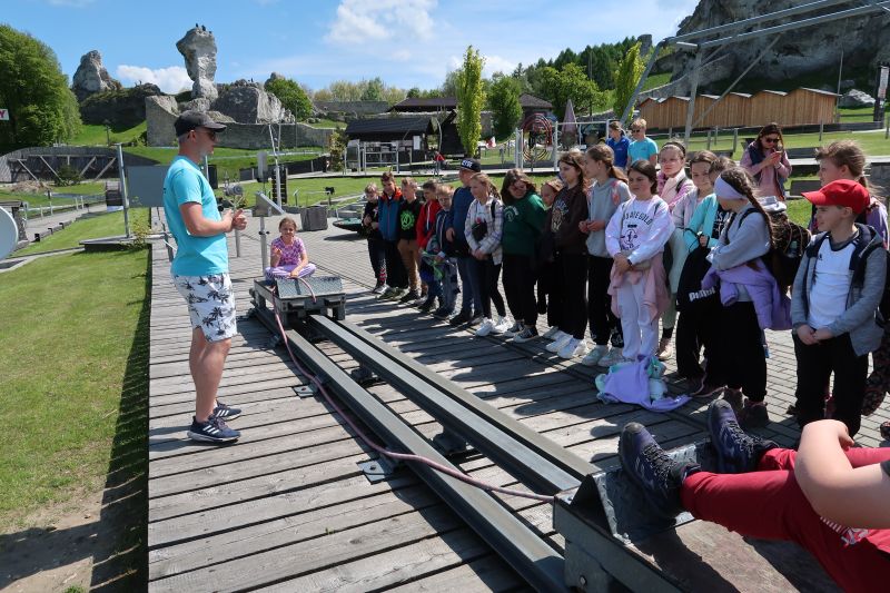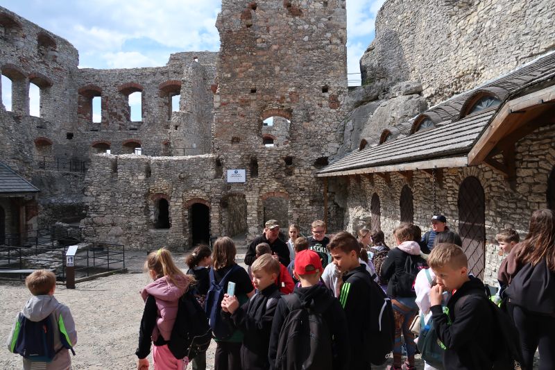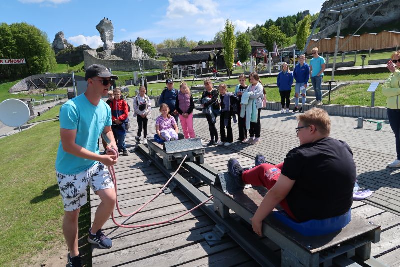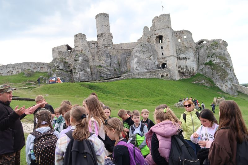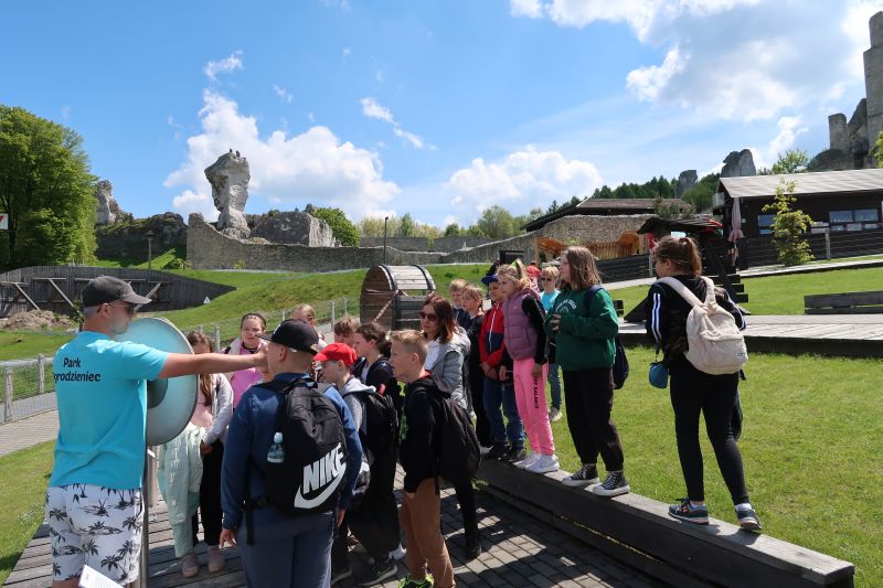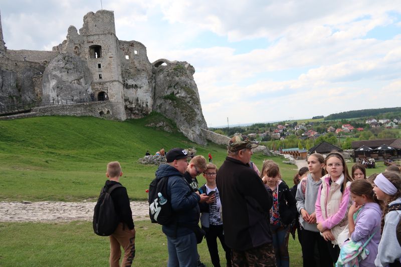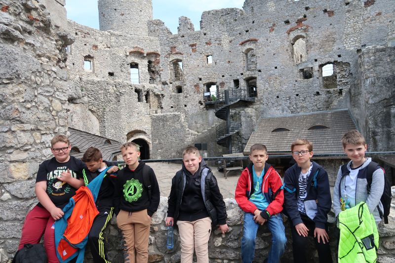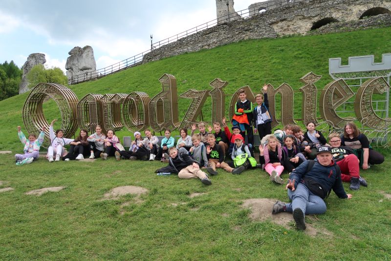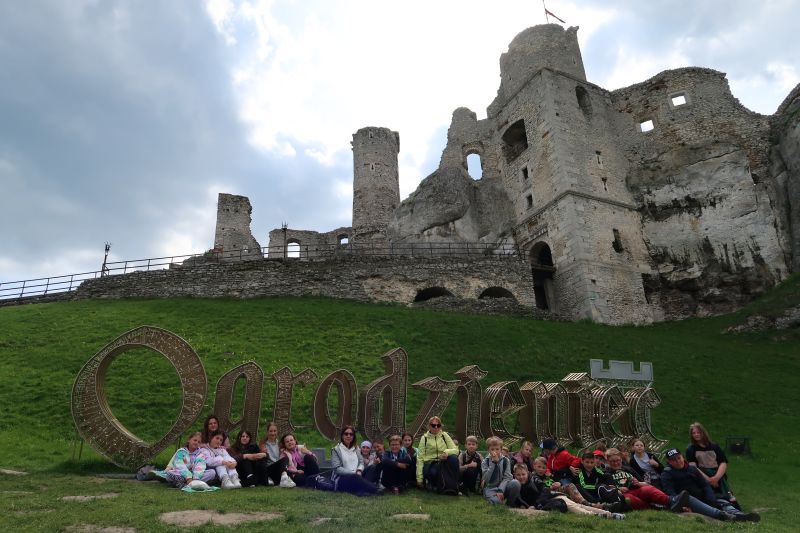 12 maja 2023 r. uczniowie klas 4-ych wraz ze swoimi opiekunami, p. Małgorzatą Pawluś, p. Beatą Opałką i p. Anną Madejczyk wyruszyli na wycieczkę do Ogrodzieńca. Pierwszą i niezapomnianą atrakcją wyjazdu był pobyt w PARKU-OGRODZIENIEC, który znajduje się tuż u stóp malowniczo położonych, przepięknych ruin zamku. Kompleks składa się z 5 atrakcji, które dedykowane są wszystkim sympatykom dobrej zabawy. W PARKU MINIATUR uczestnicy wycieczki mogli podziwiać Szlak Orlich Gniazd w skali 1:25 rozciągający się od Krakowa, aż po Częstochowę, a także repliki machin oblężniczych z okresu średniowiecza. W PARKU DOŚWIADCZEŃ FIZYCZNYCH, natomiast, dowiedzieli się jak działają podstawowe prawa fizyki a najbardziej odważni mogli sprawdzić działanie takich urządzeń jak symulator lotów i symulator dachowania. Nie małą odwagą musieli się też wykazać zwiedzający DOM LEGEND i STRACHÓW, gdzie trzeba było stanąć oko w oko z czarnym psem, białą damą i potężnymi nietoperzami. Pokonując swój strach dzielnie przechodzili przez wrota obiektu i przenosili się w fascynujący świat baśni i legend, z których słynie Jura Krakowsko-Częstochowska. Ostatnie dwie atrakcje na terenie parku - TOR SANECZKOWY i PARK ROZRYWKI czekały na miłośników mocnych wrażeń. Po kilku godzinach dobrej zabawy wyruszyliśmy na zwiedzanie ruin Zamku Ogrodzieniec - największej warowni na Szlaku Orlich Gniazd, a także, bez wątpienia, jednego z najpiękniejszych zamków w Polsce. Po wysłuchaniu pasjonującej historii zamku i poznaniu zawiłych losów jego mieszkańców udaliśmy się na pyszny posiłek.