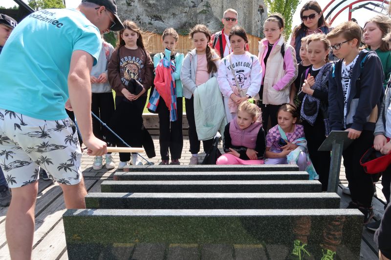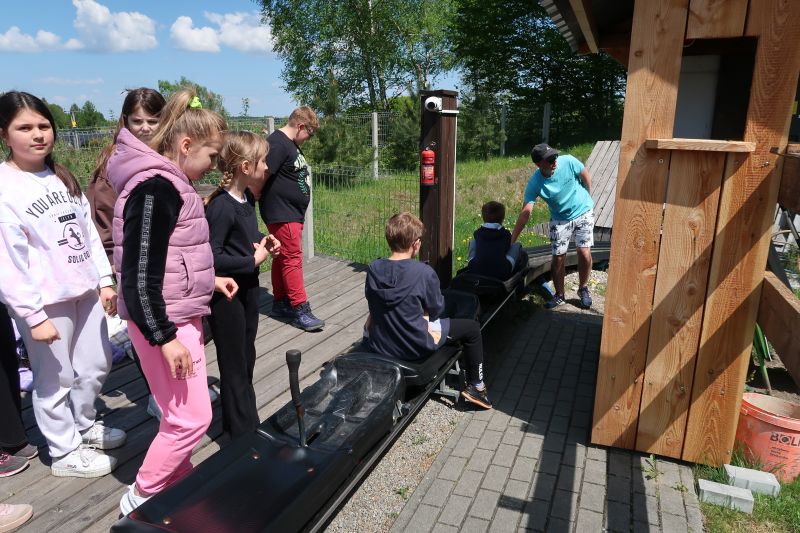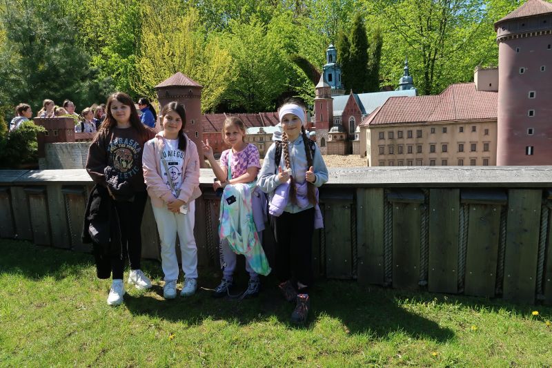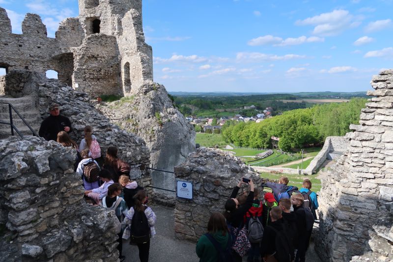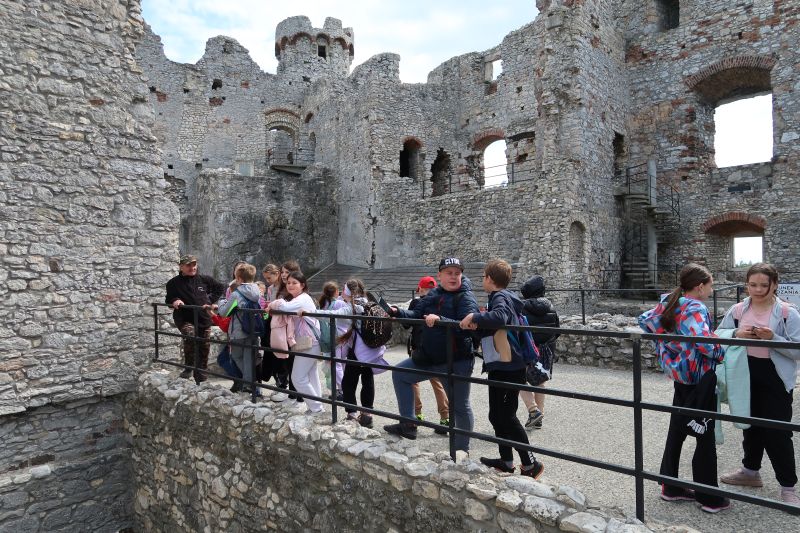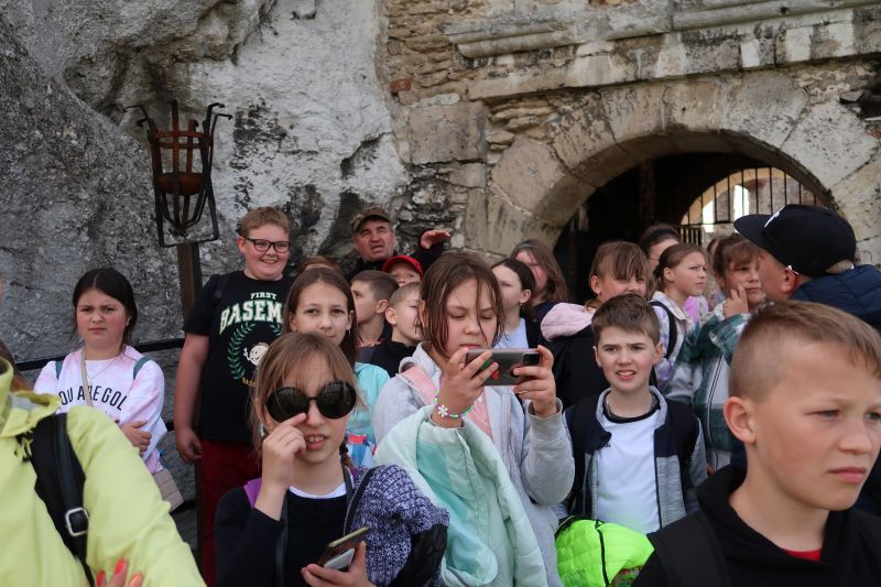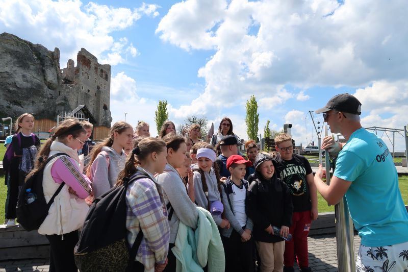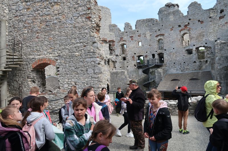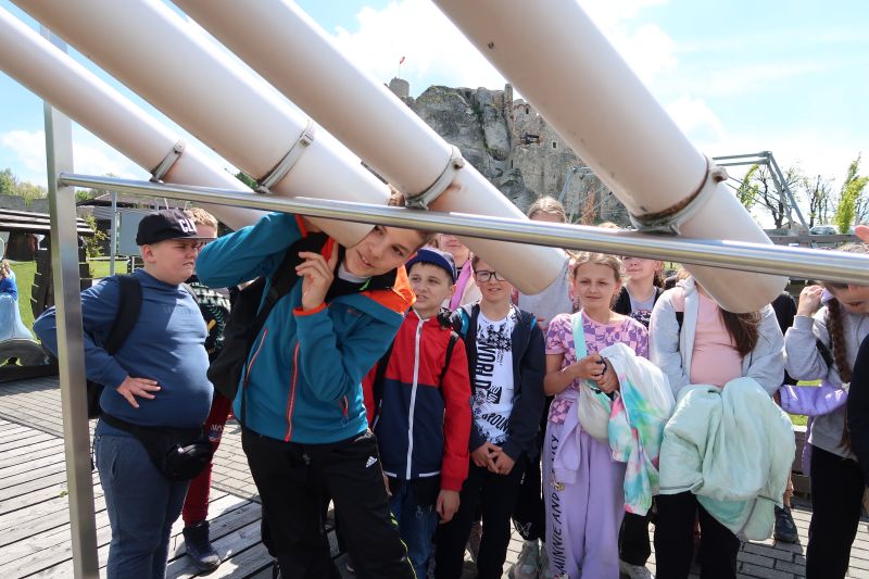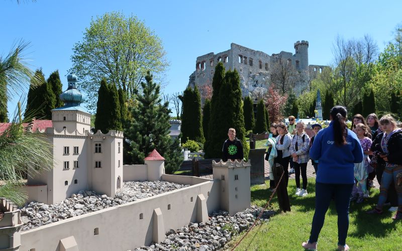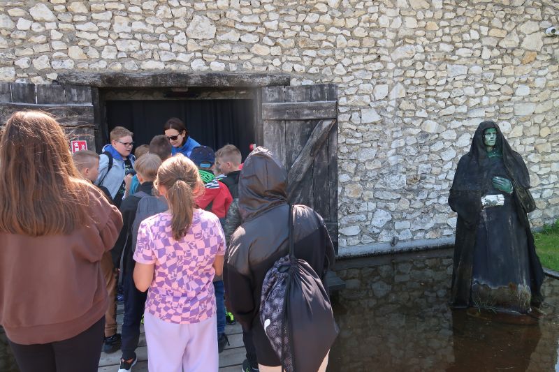 12 maja 2023 r. uczniowie klas 4-ych wraz ze swoimi opiekunami, p. Małgorzatą Pawluś, p. Beatą Opałką i p. Anną Madejczyk wyruszyli na wycieczkę do Ogrodzieńca. Pierwszą i niezapomnianą atrakcją wyjazdu był pobyt w PARKU-OGRODZIENIEC, który znajduje się tuż u stóp malowniczo położonych, przepięknych ruin zamku. Kompleks składa się z 5 atrakcji, które dedykowane są wszystkim sympatykom dobrej zabawy. W PARKU MINIATUR uczestnicy wycieczki mogli podziwiać Szlak Orlich Gniazd w skali 1:25 rozciągający się od Krakowa, aż po Częstochowę, a także repliki machin oblężniczych z okresu średniowiecza. W PARKU DOŚWIADCZEŃ FIZYCZNYCH, natomiast, dowiedzieli się jak działają podstawowe prawa fizyki a najbardziej odważni mogli sprawdzić działanie takich urządzeń jak symulator lotów i symulator dachowania. Nie małą odwagą musieli się też wykazać zwiedzający DOM LEGEND i STRACHÓW, gdzie trzeba było stanąć oko w oko z czarnym psem, białą damą i potężnymi nietoperzami. Pokonując swój strach dzielnie przechodzili przez wrota obiektu i przenosili się w fascynujący świat baśni i legend, z których słynie Jura Krakowsko-Częstochowska. Ostatnie dwie atrakcje na terenie parku - TOR SANECZKOWY i PARK ROZRYWKI czekały na miłośników mocnych wrażeń. Po kilku godzinach dobrej zabawy wyruszyliśmy na zwiedzanie ruin Zamku Ogrodzieniec - największej warowni na Szlaku Orlich Gniazd, a także, bez wątpienia, jednego z najpiękniejszych zamków w Polsce. Po wysłuchaniu pasjonującej historii zamku i poznaniu zawiłych losów jego mieszkańców udaliśmy się na pyszny posiłek.
