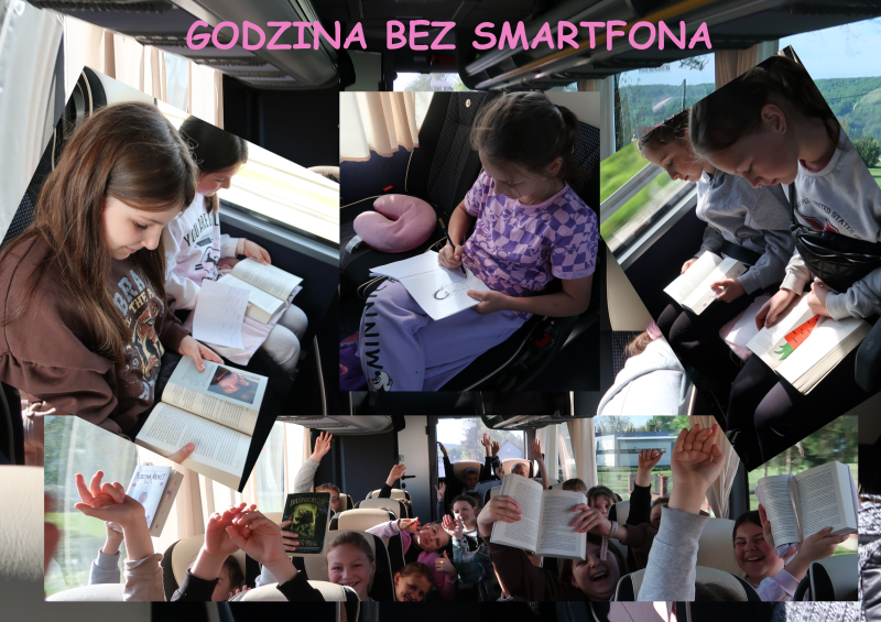 W drodze do Ogrodzieńca, a także w drodze powrotnej nasi uczniowie wzięli udział w akcji „Godzina bez smartfona”. Ten wolny od telefonu czas spędzili na czytaniu książek, rysowaniu i wspólnym śpiewaniu … a repertuar był naprawdę szeroki!