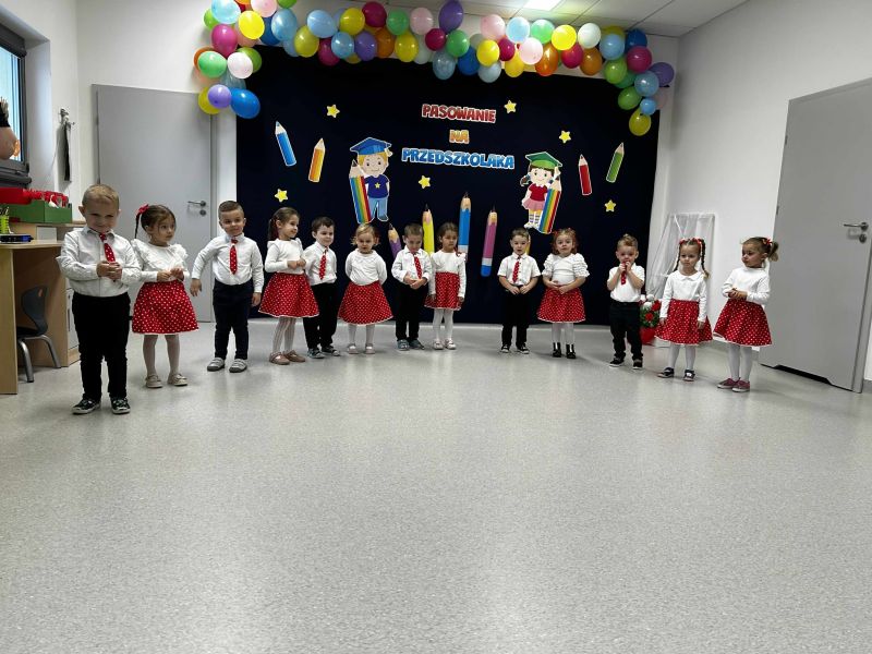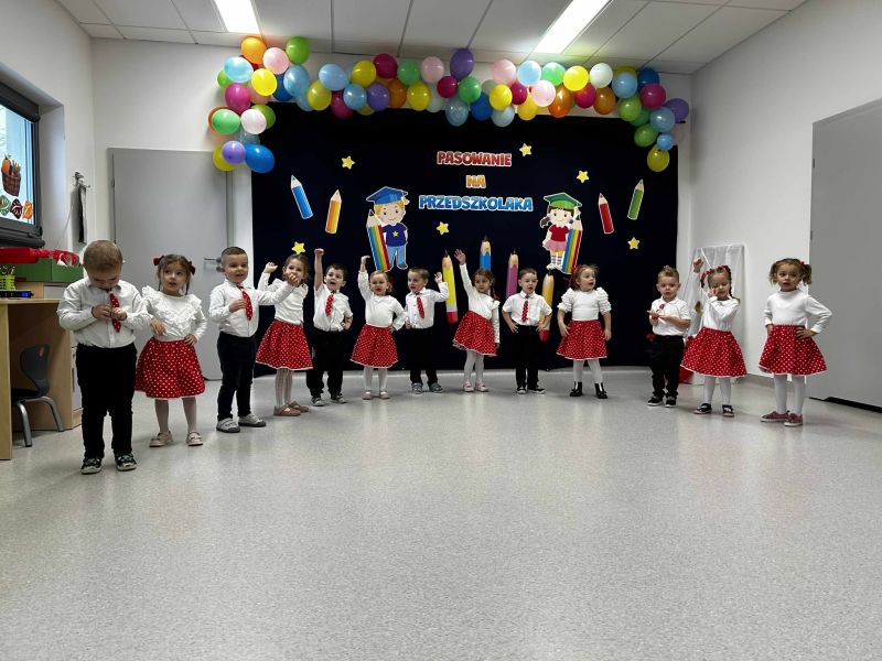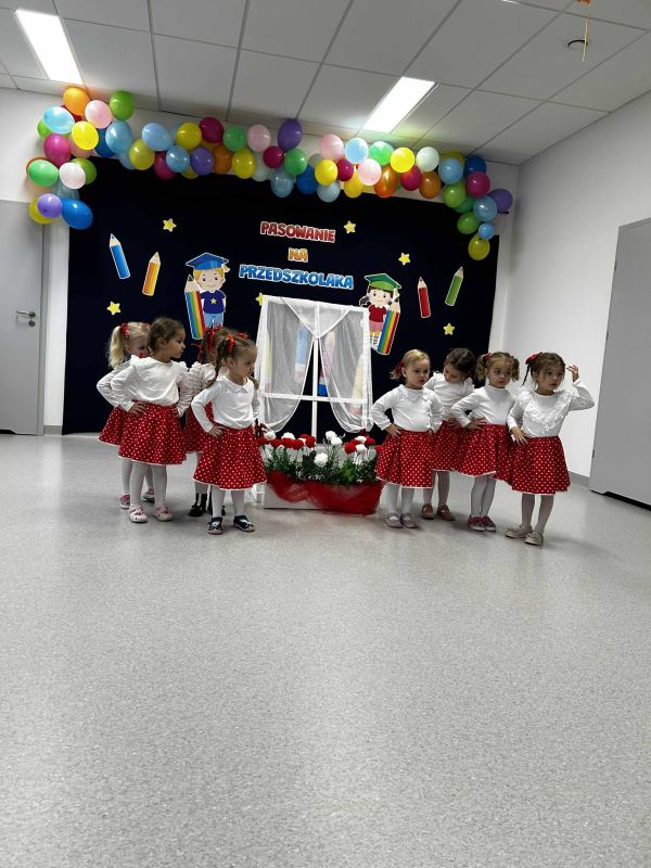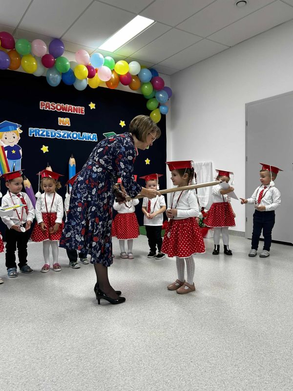 Pasowanie na przedszkolaka to pierwsza ważniejsza uroczystość dzieci, dlatego w tym wyjątkowym dniu dzieciom towarzyszyli ich rodzice. Uroczystość rozpoczęła się od krótkiej części artystycznej, w której dzieci zaprezentowały swoje umiejętności recytatorskie, wokalne i taneczne. Małe przedszkolaki zachwyciły swoim występem zgromadzoną publiczność. Po części artystycznej nastąpił akt pasowania, którego dokonała Pani Dyrektor Anna Czech.