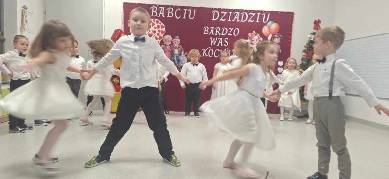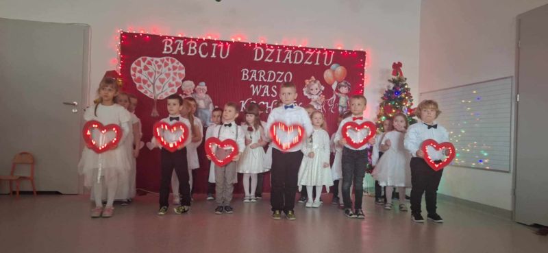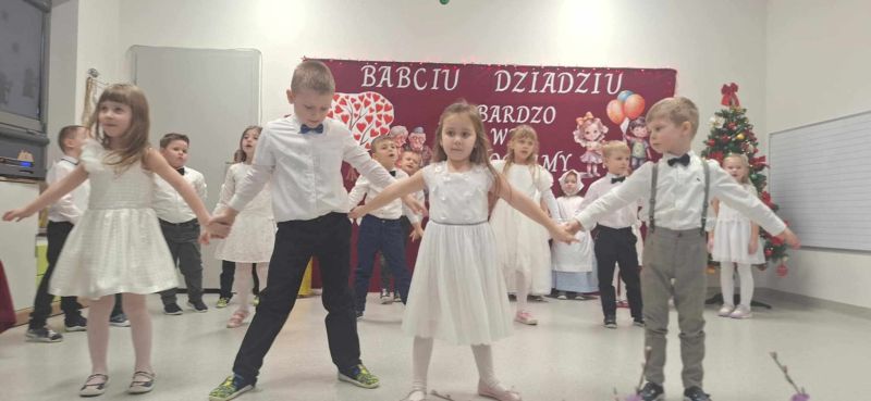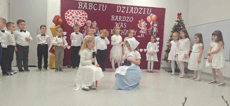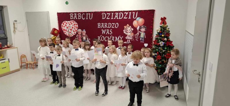Z okazji Dnia Babci i Dziadka dzieci we wszystkich grupach przygotowały specjalny dla nich program artystyczny: recytowały okolicznościowe wiersze, śpiewały piosenki, tańczyły, wyrażając w ten sposób swoją miłość i wdzięczność za ich trud i oddanie. Każdy wnuczek i wnuczka własnoręcznie wykonały również dla swoich ukochanych dziadków laurkę czy drobny upominek. Starszaki zaprezentowały Jasełka.