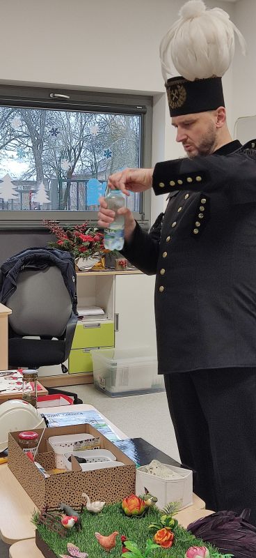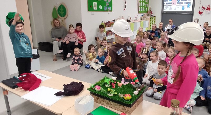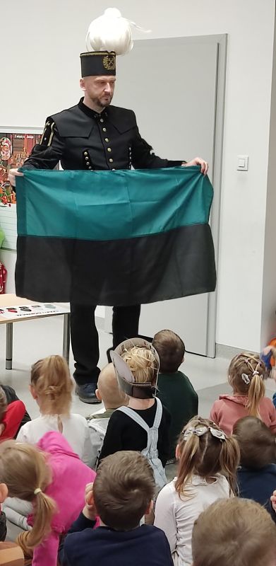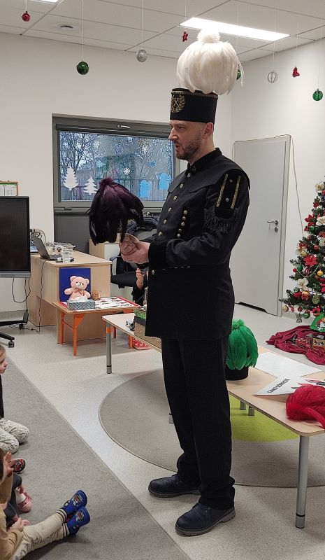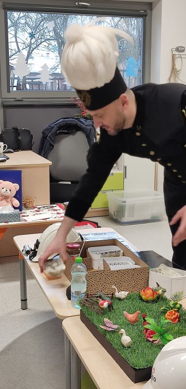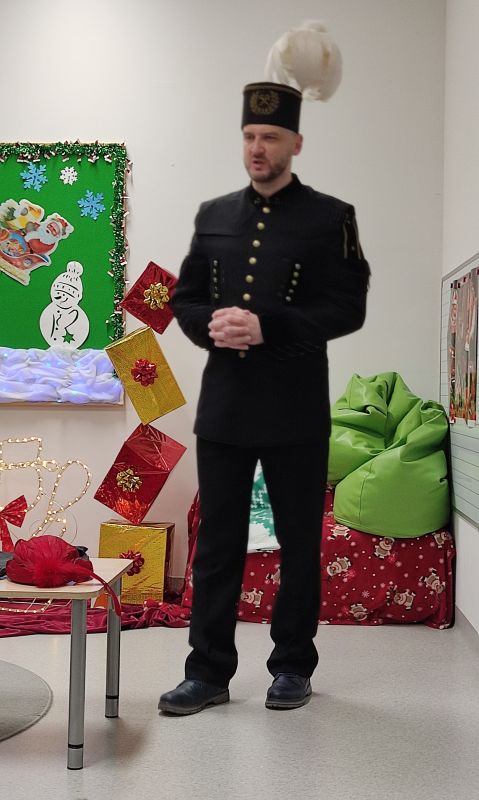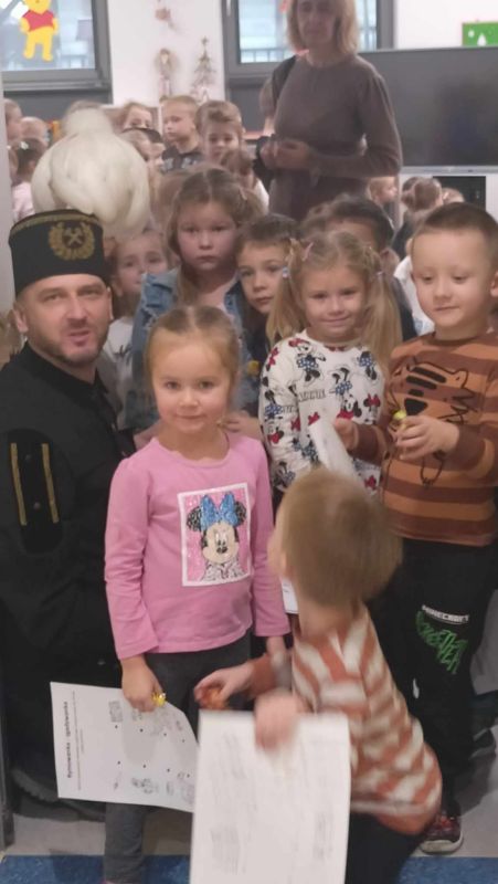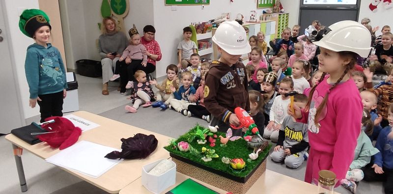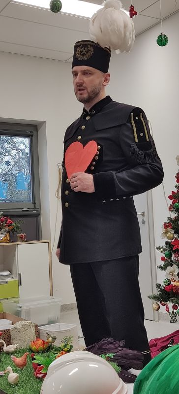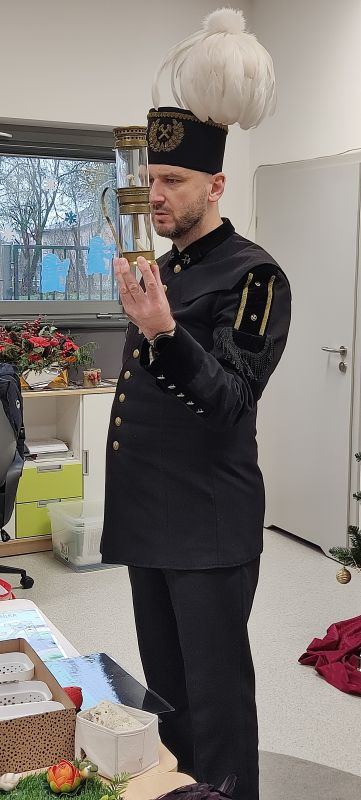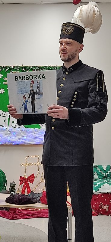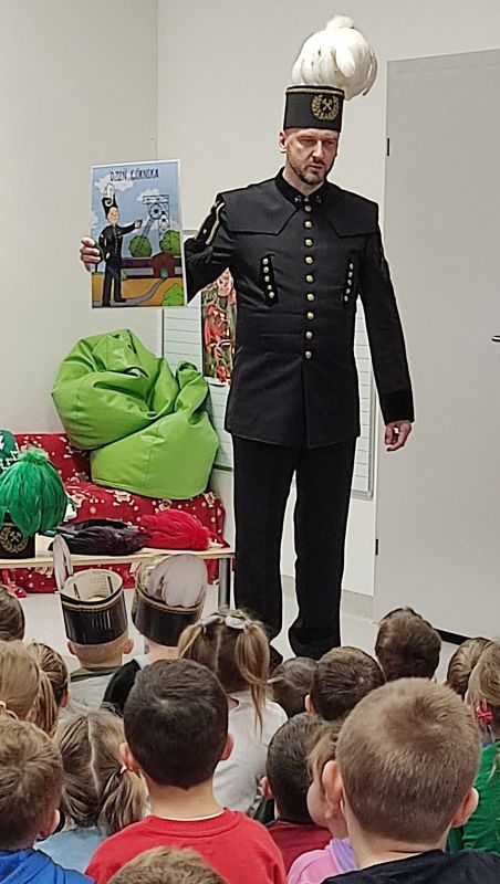 12 grudnia w naszym przedszkolu gościliśmy górnika. Nasz gość przybyły ubrany w odświętny strój, zapoznał dzieci z symbolami górniczymi, opowiadał o pracy górników, o tym co otrzymaliśmy dzięki wydobyciu węgla oraz o patronce wszystkich górników - Świętej Barbarze. Dzieci korzystają z możliwości przymierzenia czapki górniczej - czako.