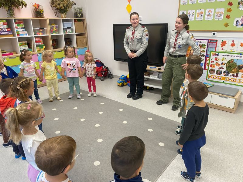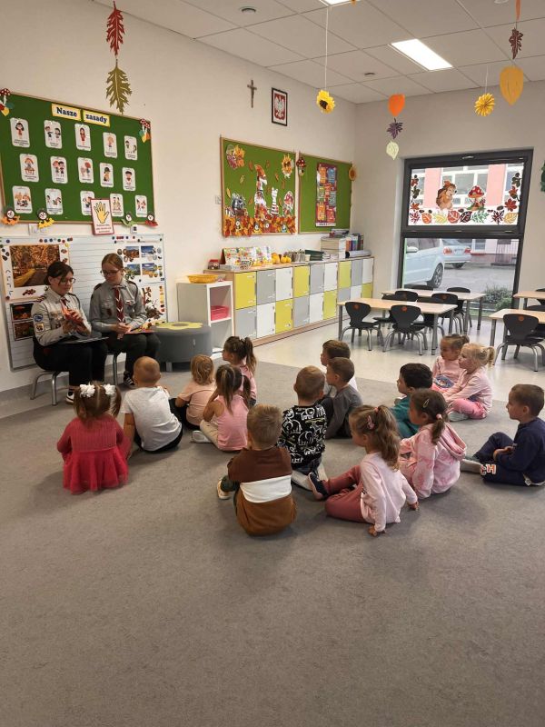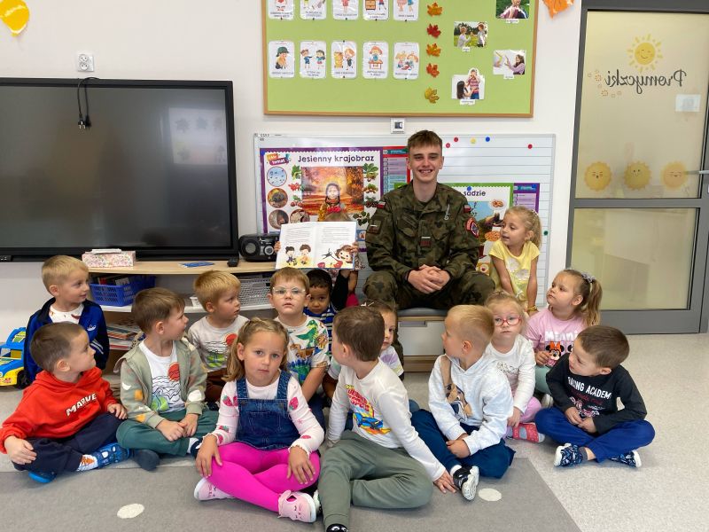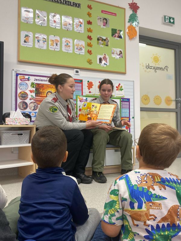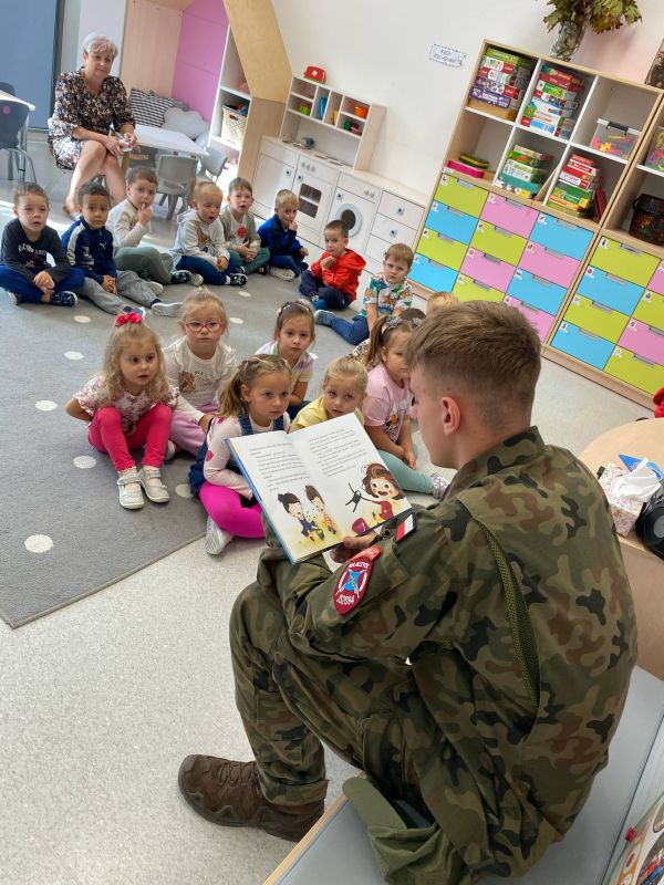 Do naszego przedszkola zawitali harcerze z 307 KGDH Wilki oraz Strzelcy z JS 2094 z Kołaczyc. Młodzież działająca w powyższych organizacjach z wielkim zaangażowaniem dołączyła do akcji i w każdej grupie, począwszy od Motylków aż po Sówki czytali swoim młodszym kolegom piękne bajki.