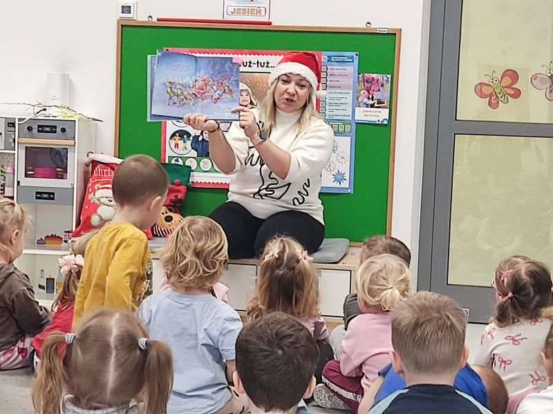 Dzięki książeczce najmłodsze przedszkolaki dowiedziały się: jak wygląd Święty Mikołaj, kto mu pomaga przez cały rok w przygotowaniu prezentów oraz czym przemieszcza się roznosząc prezenty po całym świecie.