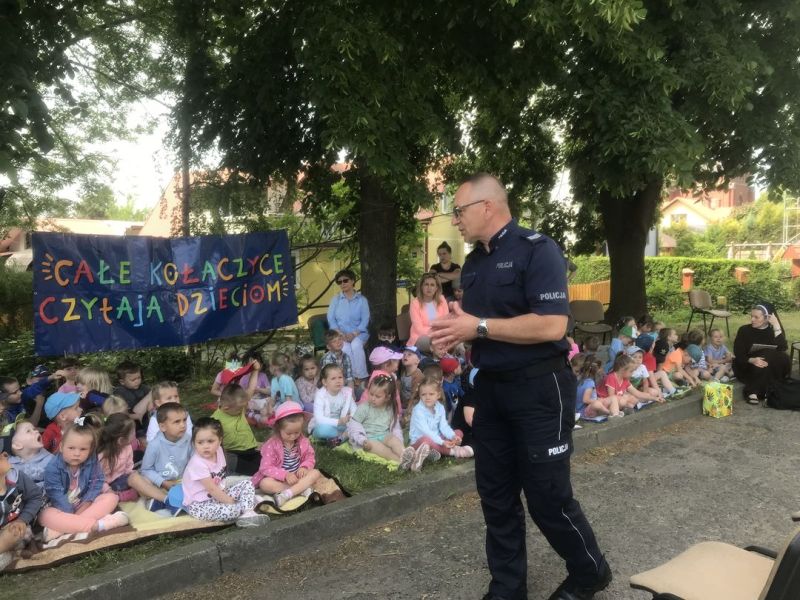 Naszymi gośćmi byli: dzielnicowy z Posterunku w Kołaczycach oraz funkcjonariusz Ruchu Drogowego z Jasła.Czytali oni dzieciom z Gminnego Przedszkola w Kołaczycach oraz dzieciom z Niepublicznego Przedszkola Sióstr Serafitek z Bieździadki.