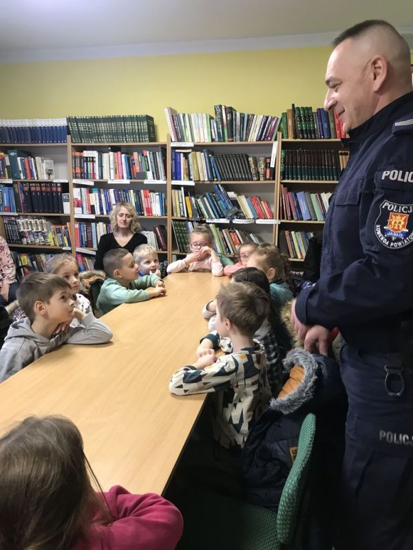 ( 5 -6 latków) z Dzielnicowym z posterunku Policji w Kołaczycach. Przypomniał on dzieciom podstawowe zasady bezpiecznego zachowania się w okresie ferii oraz podczas przechodzenia przez jezdnię . Przedszkolaki wysłuchały również książki W. Chotomskiej