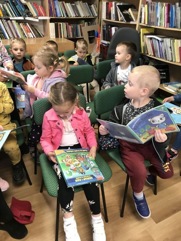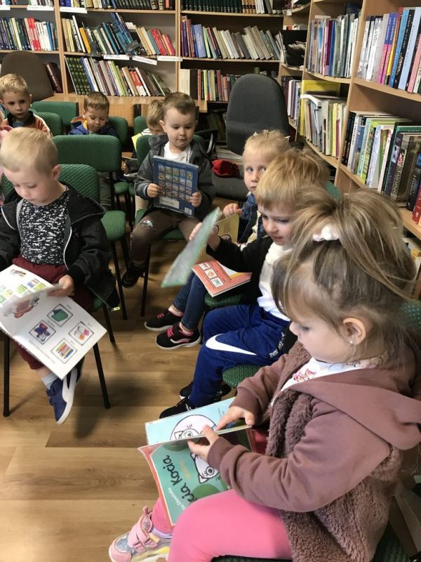 i ,, Biedronki”z Gminne Przedszkole w Kołaczycach. Dzieci zapoznały się z książeczką ,, Kicia Kocia w bibliotece”