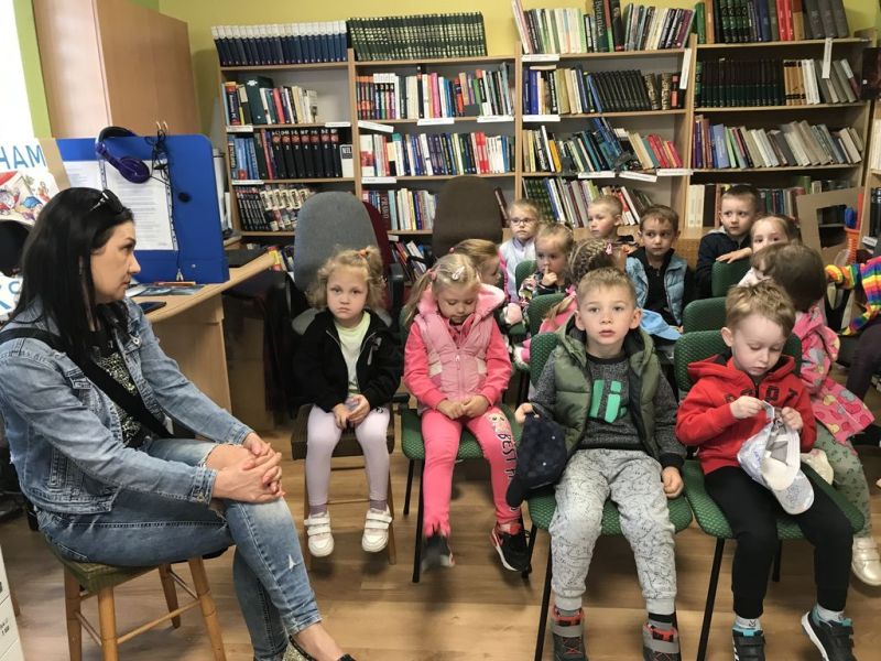 Tydzień Bibliotek- gr. ,,Biedronki "z Gminne Przedszkole w Kołaczycach w bibliotece. 9.05.2024 r.