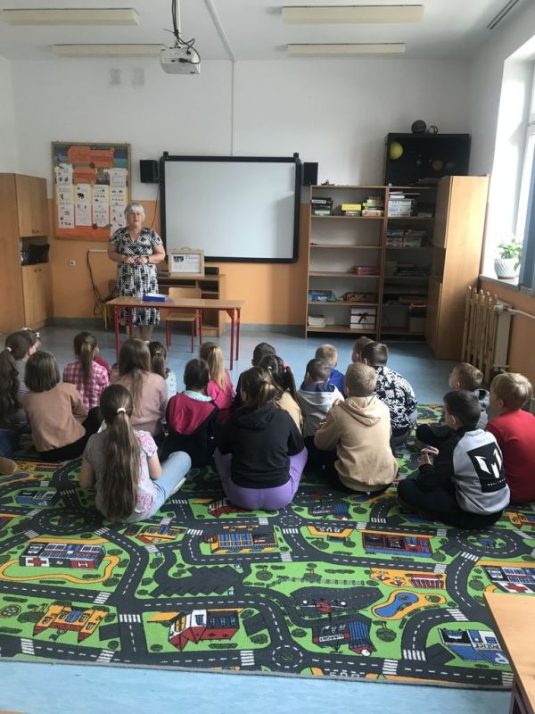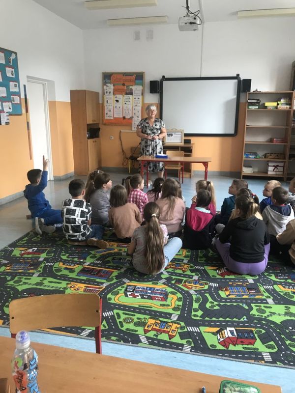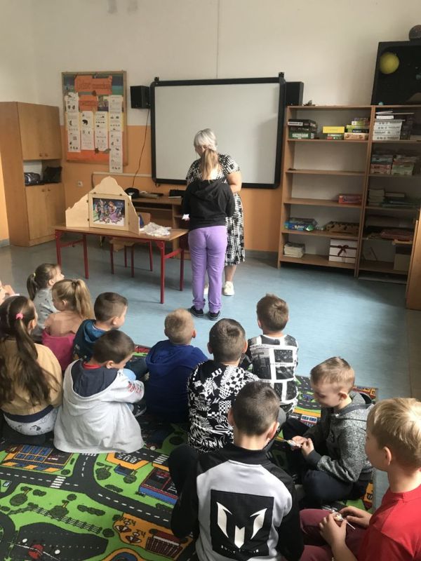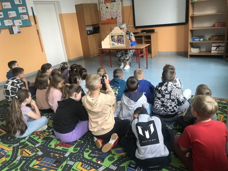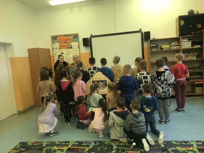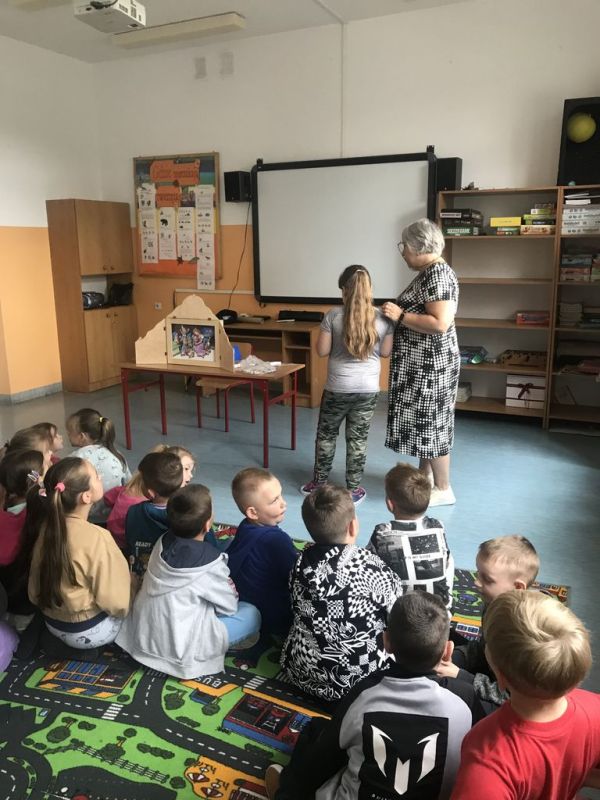 kl.od 0-III uczestniczyły w lekcji bibliotecznej. Dzieci wysłuchały opowiadania w formie teatrzyku kamishibai.