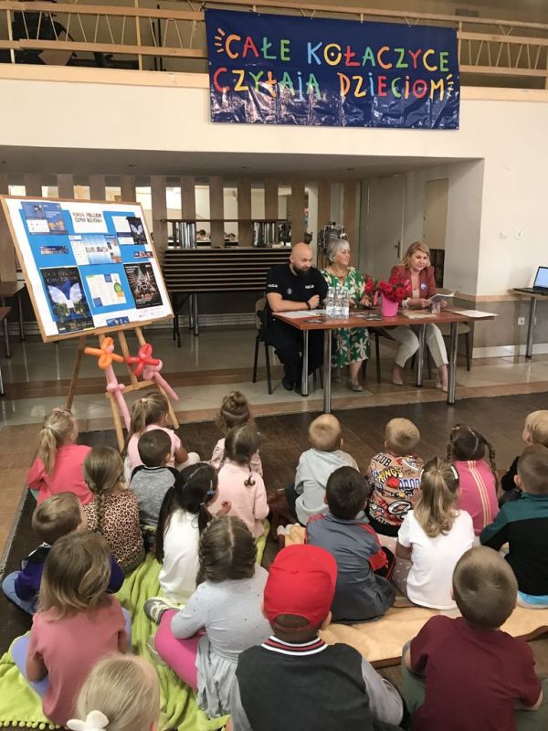 Dzieciom czytali: p. Burmistrz, Posterunek Policji, Urząd Pocztowy w Kołaczycach oraz Kwiaciarnia u Patrycji.