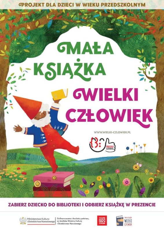 Gorąco zachęcamy do wzięcia udziału w akcji MAŁA KSIĄŻKA – WIELKI CZŁOWIEK, wszak miłość do książek jest prezentem na całe życie. Wspólnie przekonujemy o tym, że nigdy nie jest za wcześnie, by zacząć czytać. Zapraszamy wszystkich przedszkolaków do zapisania się do biblioteki i wzięcia udziału w akcji, która będzie początkiem ich czytelniczej przygody na całe życie!