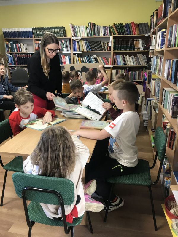 Z tej to okazji biblioteka gościła kl. I wraz z opiekunkami ze Szkoły Publicznej w Kołaczycach. Podczas zajęć dzieci zapoznały się