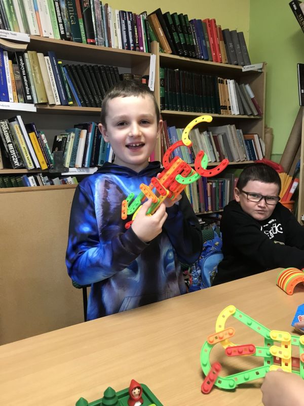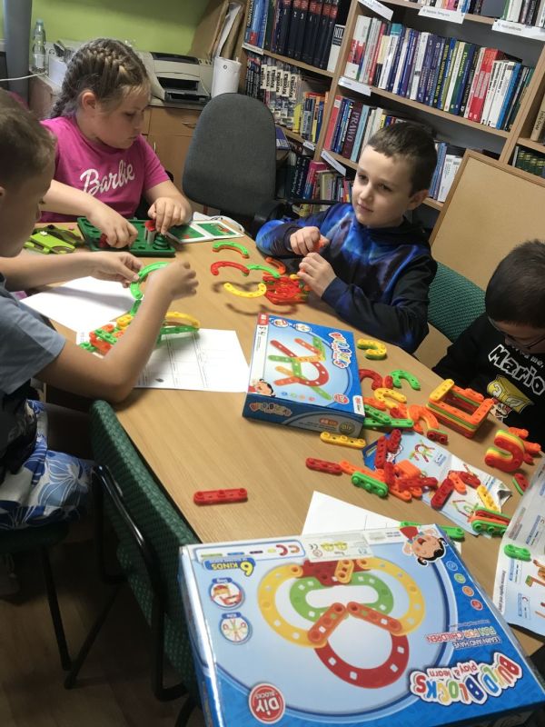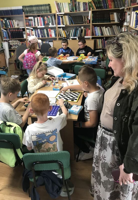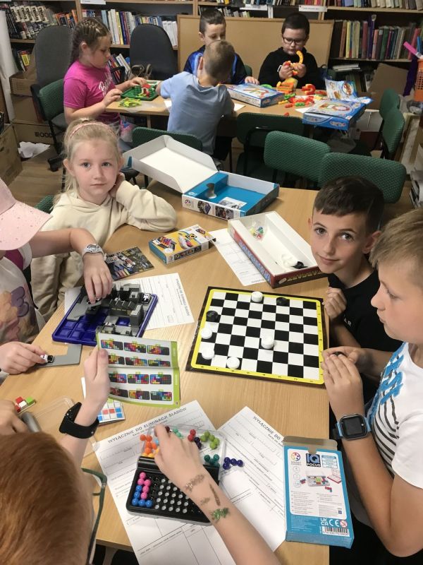 W bibliotece, oprócz czytania książek, dzieci mogą bawić się różnymi grami i układankami, w tym puzzlami. Gry planszowe, gry logiczne i układanki to popularne aktywności, które uczą koncentracji i logicznego myślenia.