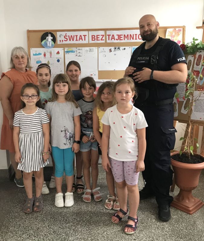 zasady bezpiecznego poruszania się po drogach oraz zachowania dzieci wobec nieznajomych.