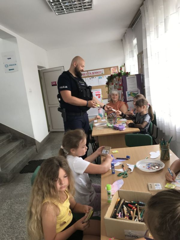 Uczestnicy spotkali się z dzielnicowym z Posterunku w Kołaczycach ,który przypomniał