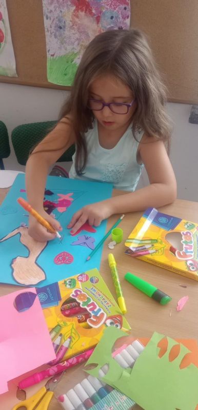 Na zajęciach dzieci rozwijąją swoje zdolności artystyczne: rysują, malują, wycinają.