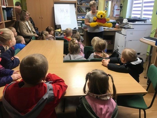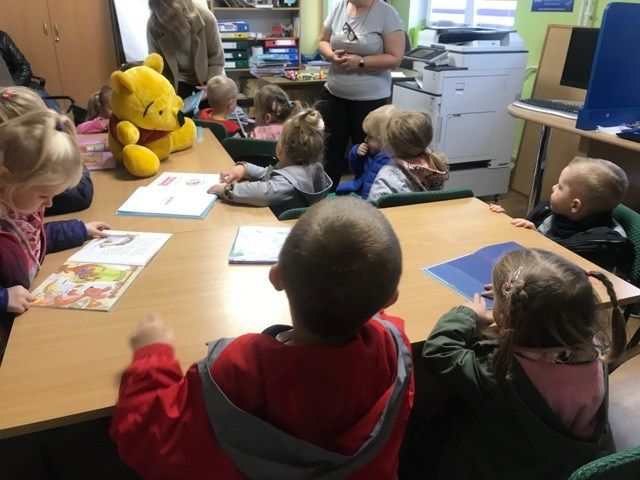 ,,Biedroneczki” zapoznały się z biblioteką oraz wysłuchały bajki o Kubusiu Puchatku, który w październiku obchodzi swoje urodziny.