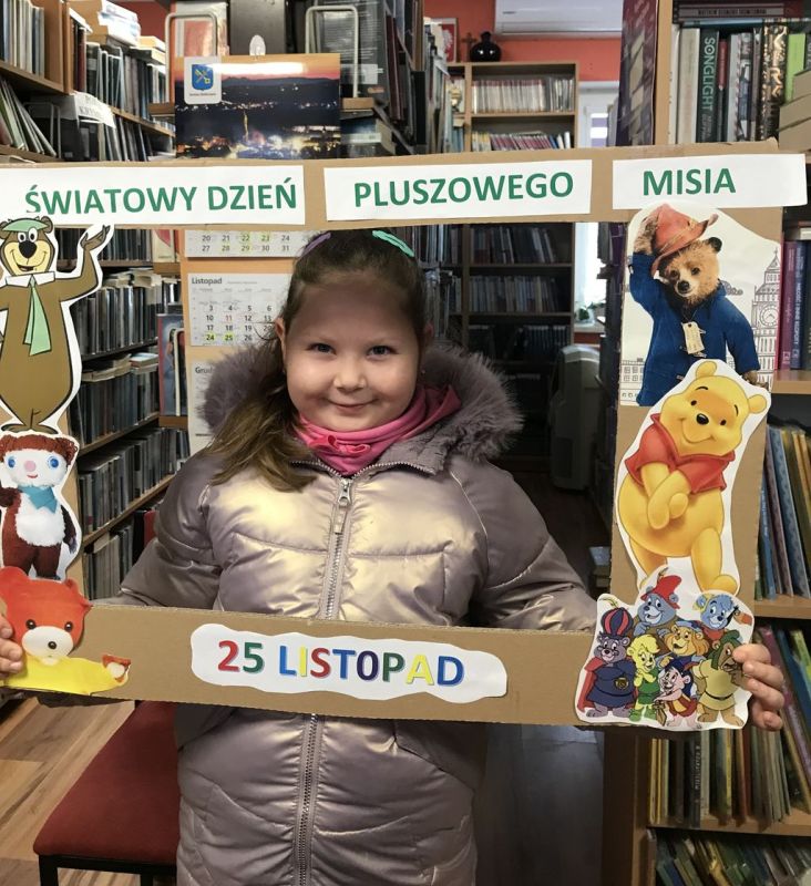 Gościem spotkania był Kubuś Puchatek, który bardzo zgłodniał. Pięcio- i sześciolatki miały za zadanie nakarmić misia celując „małe co nieco” do koszyczka ze specjalnie określonej odległości. Po intensywnej zabawie przyszedł czas na pamiątkowe zdjęcie.