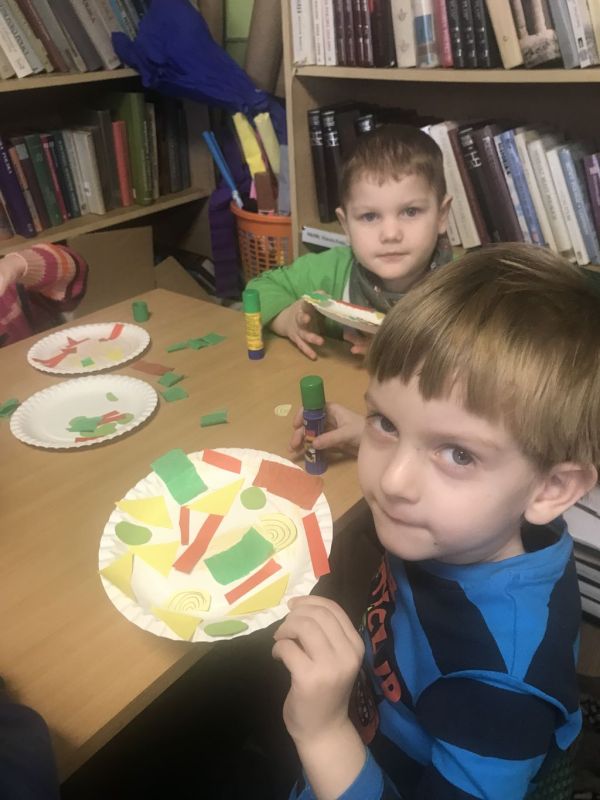 Dziewczynki i chłopcy największą frajdę mieli z możliwości wykonania swojej pizzy. Do jej stworzenia użyli papierowych talerzyków, klejów, kolorowej bibuły, kredek i wyciętych z papierów elementów przypominających warzywa. Dzięki ich