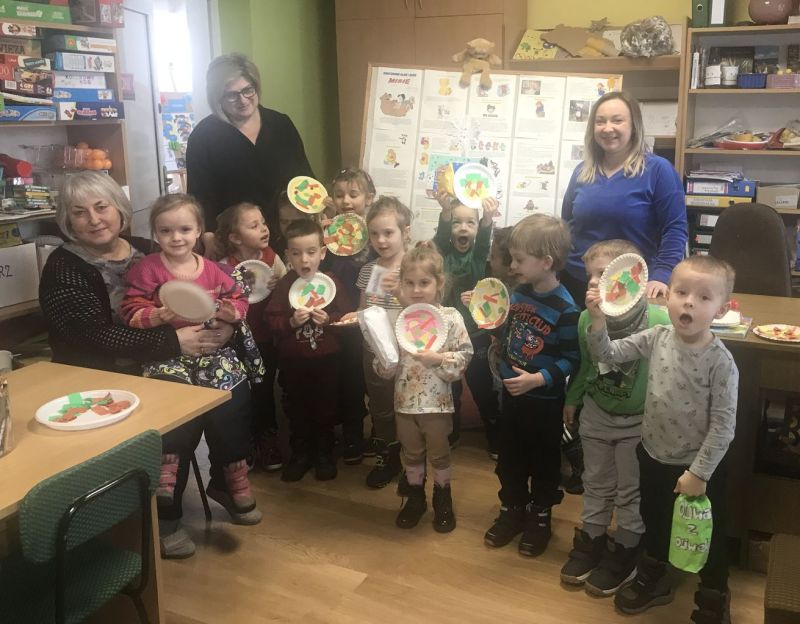 Dzisiaj (17 lutego br.) Gminną Bibliotekę Publiczną odwiedziły „Promyczki” z Gminnego Przedszkola w Kołaczycach. 4-5 latki miały okazję do opowiedzenia o swoich preferencjach smakowych związanych z pizzą i ich ulubionych dodatkach. Nie zabrakło również chwili na głośne czytanie. W ruch poszła książka Agnieszki