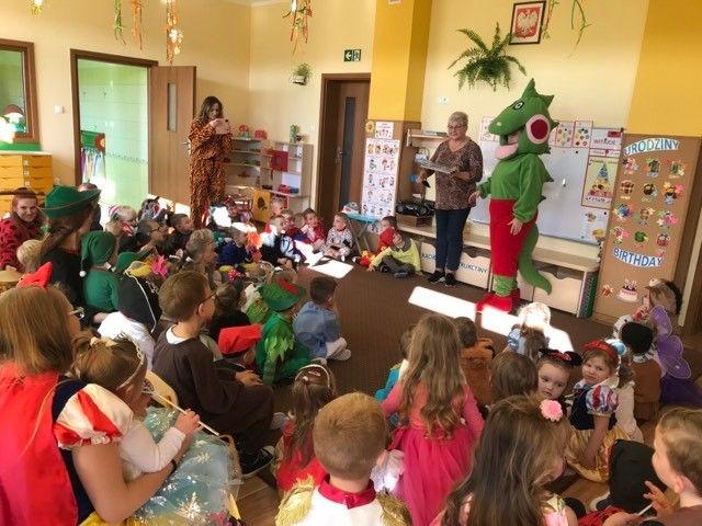 Bajki towarzyszą nam od najmłodszych lat, uczą, bawią i wychowują. Spotkanie było nie tylko przypomnienie postaci z kultowych bajek, ale również zwrócenie uwagi na rolę wychowawczą i edukacyjną bajek.Uczą odróżniania dobra od zła, właściwych postaw, empatii, pomagania sobie. Dzieci, siostry i nauczycielki w tym dniu przebrały się za ulubione postacie z bajek, wierszy, książek dla dzieci. Nie obeszło się również bez bajki ,,Zarozumiała myszka”, którą przeczytała p. Danuta z GBP w Kołaczycach.