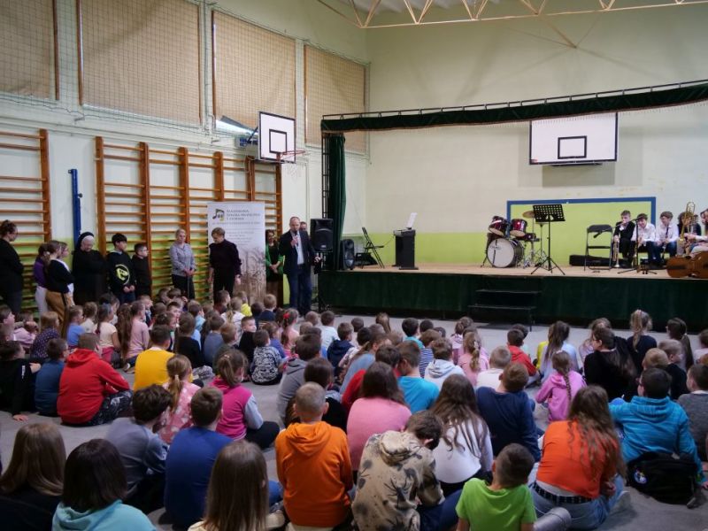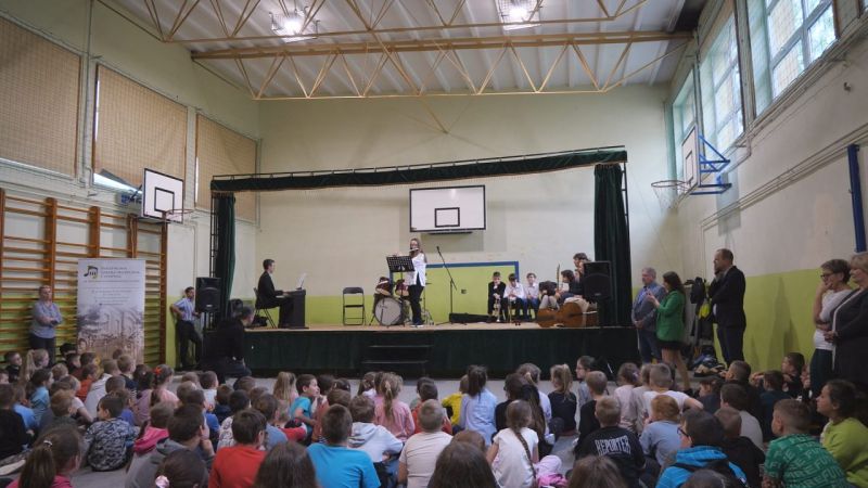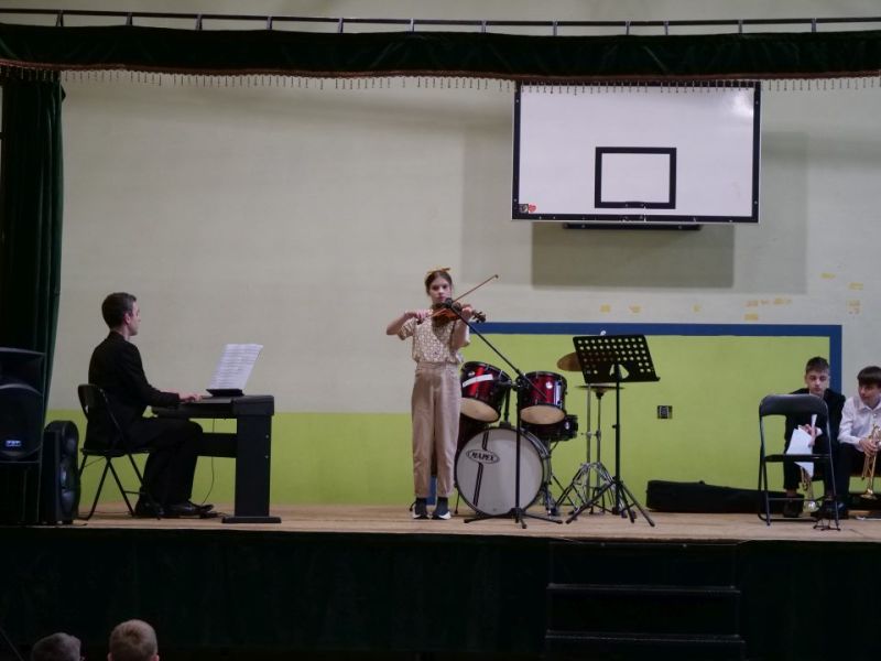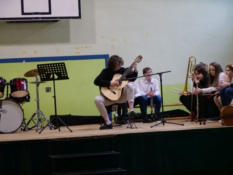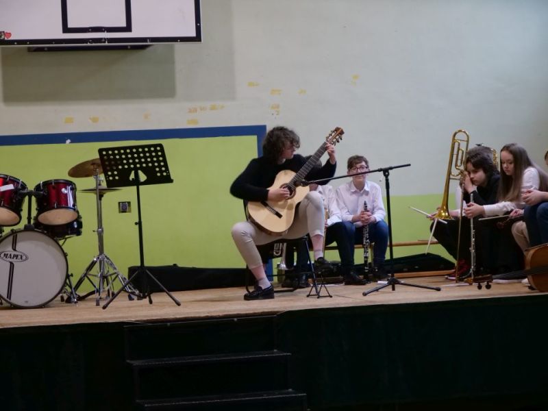 17 maja br. do naszej szkoły przybyli uczniowie i nauczyciele z Państwowej Szkoły Muzycznej w Jaśle, którzy zaprezentowali swoje umiejętności w pięknym koncercie. Koncert poprowadził pan Marek Rolek, który ciekawie opowiedział o utworach i instrumentach prezentowanych w czasie występu. Jednym z wykonawców był uczeń naszej szkoły Jakub Mocek. Uczniowie z uwagą słuchali gry swoich rówieśników i mamy nadzieję, że wielu z nich udało się zachęcić do rozwijania swoich talentów muzycznych. Dziękujemy uczniom i nauczycielom szkoły muzycznej za piękne muzyczne przeżycie i mamy nadzieję, że to nie ostatni koncert w naszej szkole.