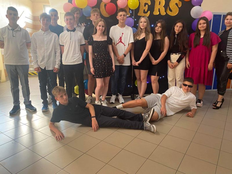 22 czerwca 2023 roku 14 uczniów klasy VIII po raz ostatni bawiło się na tradycyjnej szkolnej zabawie. Był to niezapomniany wieczór wspomnień i wzruszeń, a jednocześnie pełen planów i marzeń dotyczących kolejnego etapu edukacyjnego, który nasi uczniowie rozpoczną już po wakacjach.Zapraszamy do obejrzenia fotorelacji!