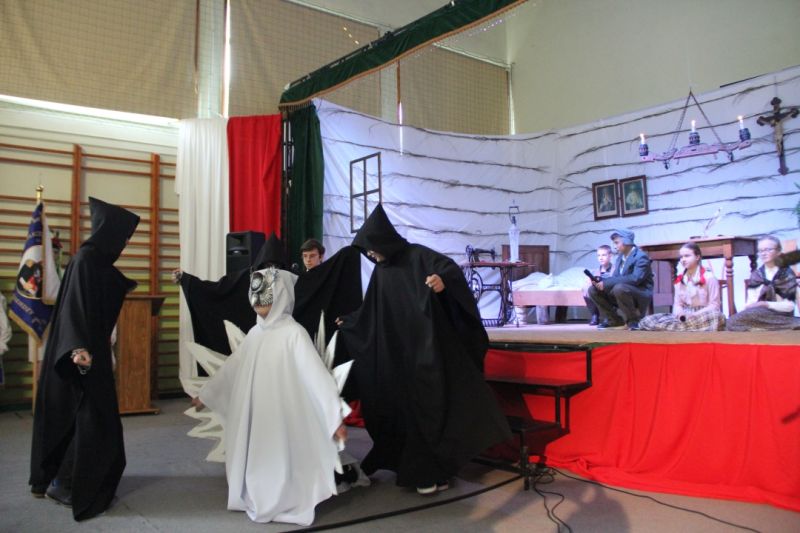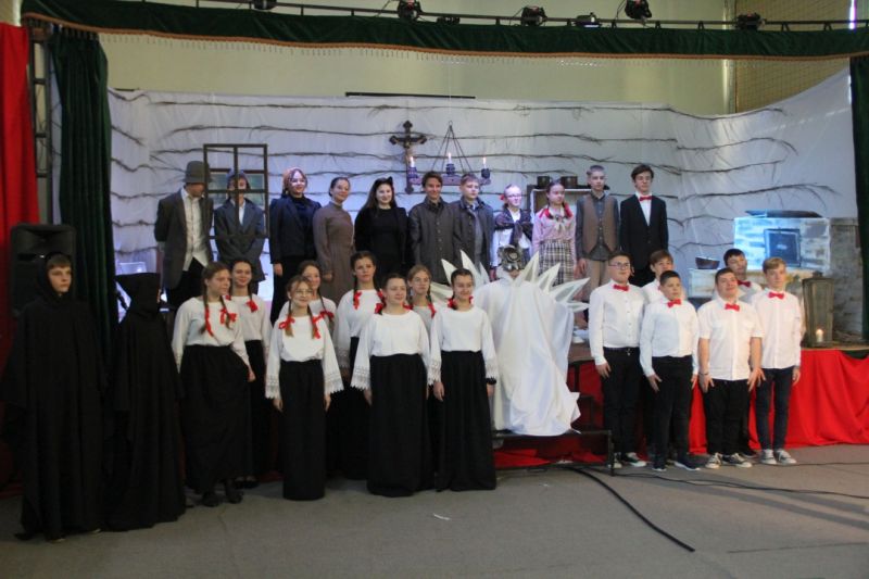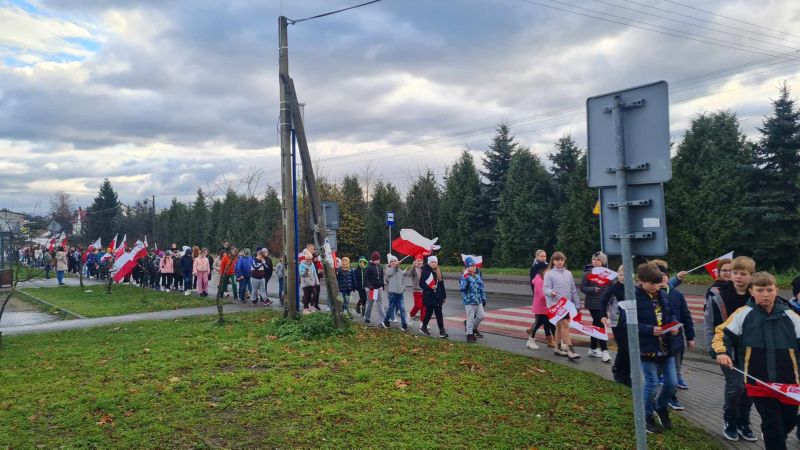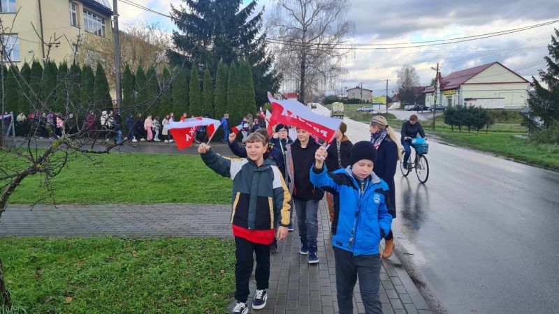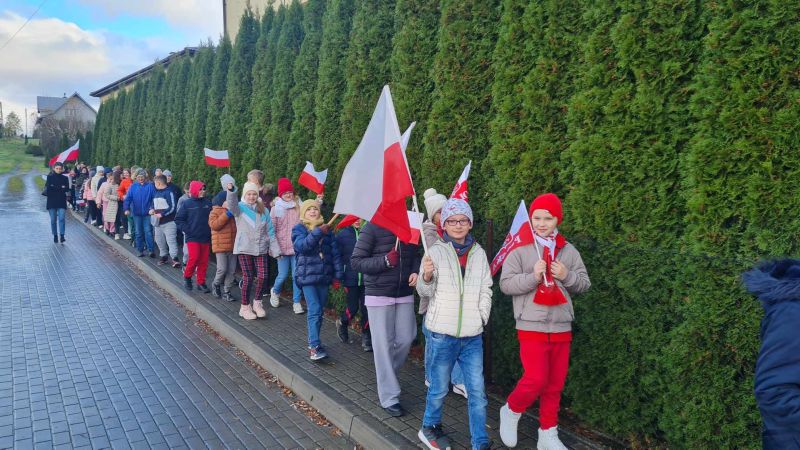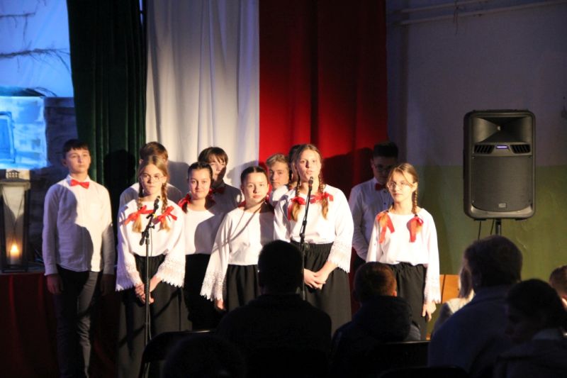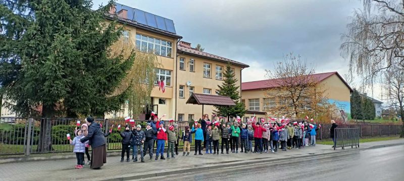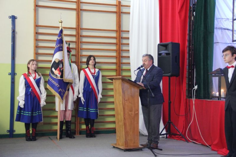 Z okazji 105 Rocznicy Odzyskania przez Polskę Niepodległości w naszej szkole odbyło się kilka wydarzeń o charakterze patriotycznym. 9 listopada 2023 roku wzięliśmy udział w ogólnopolskiej akcji ministerialnej "Szkoła do hymnu", która polega na wspólnym odśpiewaniu Hymnu Narodowego o symbolicznej godzinie 11:11. 12 listopada uczniowie klas VII zaprosili społeczność lokalną na "Wieczornicę patriotyczną", która odbyła się w szkolnej sali gimnastycznej. Młodzi aktorzy pod opieką Pani Wicedyrektor Beaty Biernackiej, Pana Marcina Balasy oraz Pani Marzeny Liszki i Pani Małgorzaty Maczugi przygotowali program artystyczny pod tytułem "Pisk białego orła". W pięknej scenografii uczniowie zaprezentowali spektakl teatralno - muzyczny, przybliżający widzom wydarzenia historyczne z okresu rozbiorów. 13 listopada spektakl został zaprezentowany całej społeczności szkolnej. Uczniów klas VII nagrodzono gromkimi brawami, doceniając ich trud oraz zaangażowanie włożone w przygotowanie przedstawienia. Dnia 14 listopada zgodnie z tradycją szkoły odbył się "Marsz Niepodległości". Corocznie uczniowie wszystkich klas manifestują swoją przynależność narodową, maszerując z biało - czerwonymi flagami przez Bieździedzę i Bieździadkę. Pan Dyrektor Wiesław Jedziniak podziękował uczniom oraz nauczycielom za przygotowanie obchodów Święta Niepodległości.