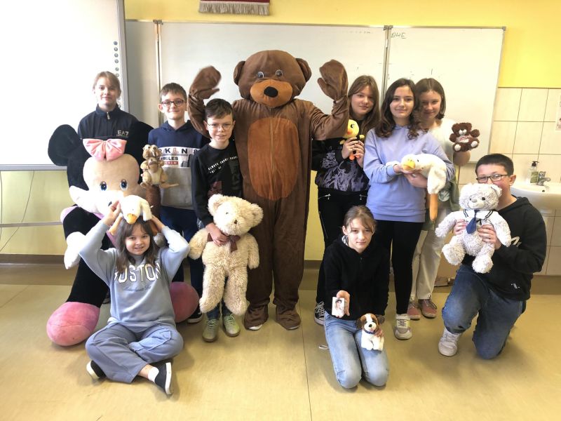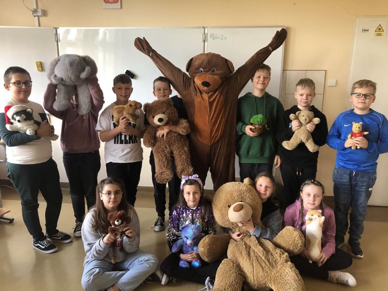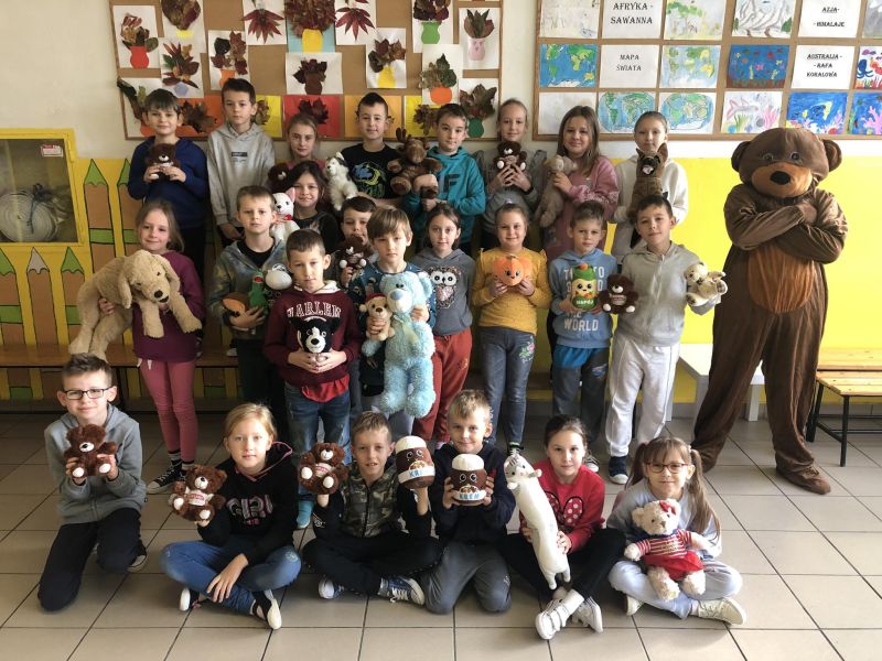 24 listopada br. obchodziliśmy Dzień Pluszowego Misia. W tym dniu wszyscy uczniowie, zarówno ci starsi jak i młodsi przynieśli do szkoły swojego ulubionego pluszowego przyjaciela. Każda z klas wykonała pamiątkowe zdjęcie z Misiem, który odwiedził naszą szkołę. Dzień ten wypełniony był śmiechem i dobrą zabawą. Mimo wielu nowoczesnych zabawek moda na misie nie przemija i aż wypada powiedzieć: ,,Czy to jutro, czy to dziś, wszystkim jest potrzebny miś”.