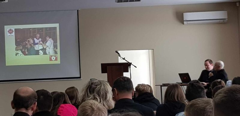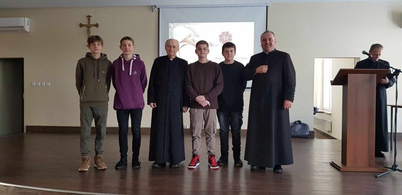 29 listopada 2023 roku przy kościele farnym w Jaśle odbyło się spotkanie Szkolnych Kół Caritas z Diecezji Rzeszowskiej, mające charakter szkoleniowo - formacyjny. Naszą Szkołę reprezentował ks. Grzegorz Guzior oraz uczniowie: Szymon Teleś, Mateusz Kolbusz, Maksymilian Gruchacz i Grzegorz Hendzel. Uczestnicy spotkania wysłuchali dwie konferencje pt. "Szkolne Koło Caritas w moim sercu..." oraz "Orędzie na Światowy Dzień Ubogich", a następnie zapoznali się z kalendarium Caritas oraz bieżącym kalendarzem działań dla SKC.