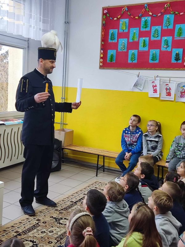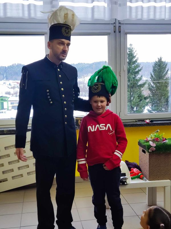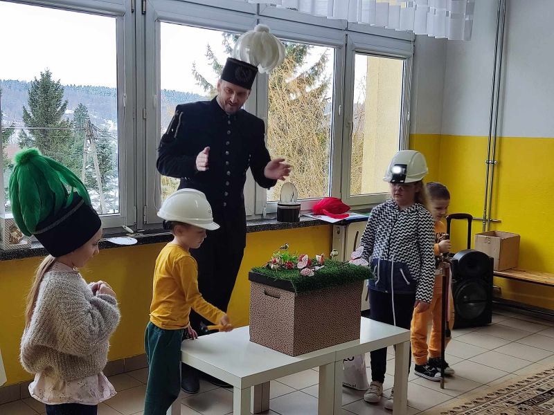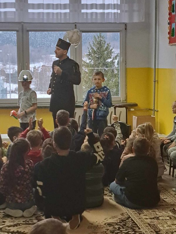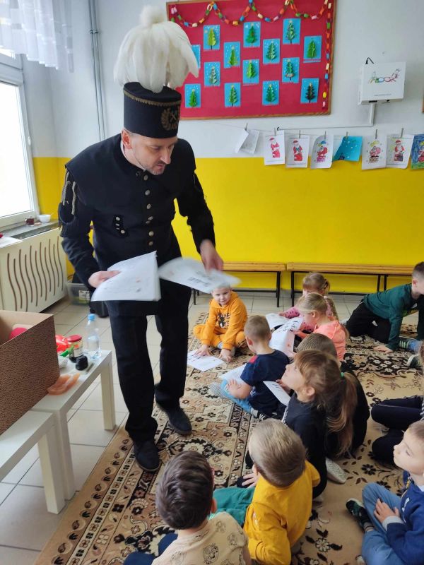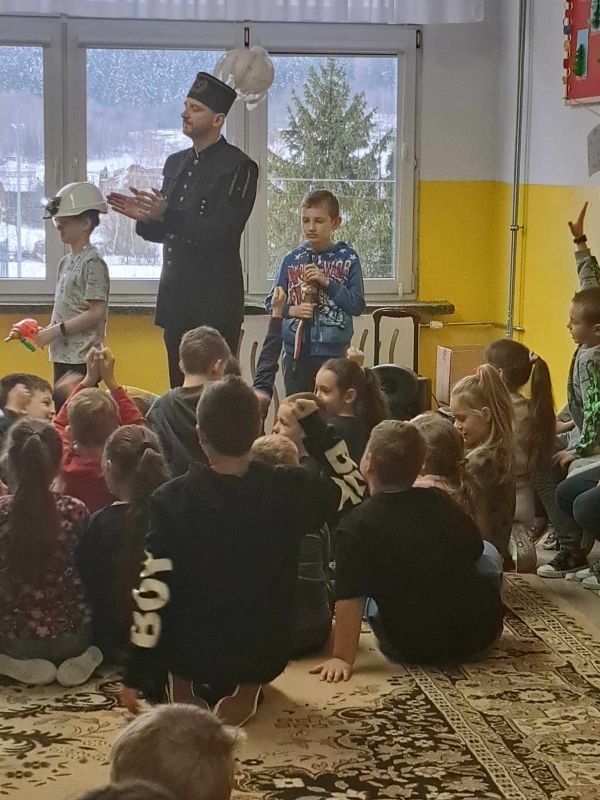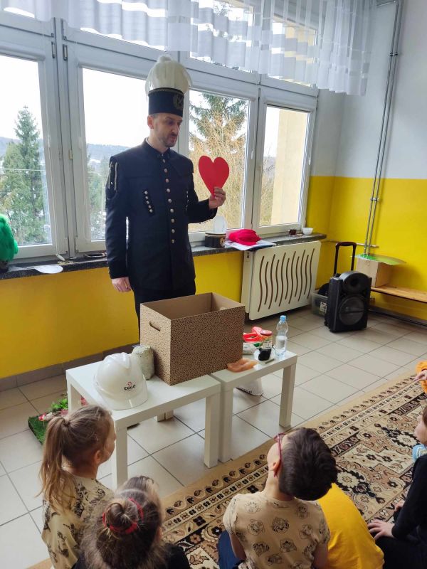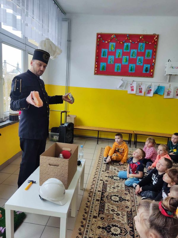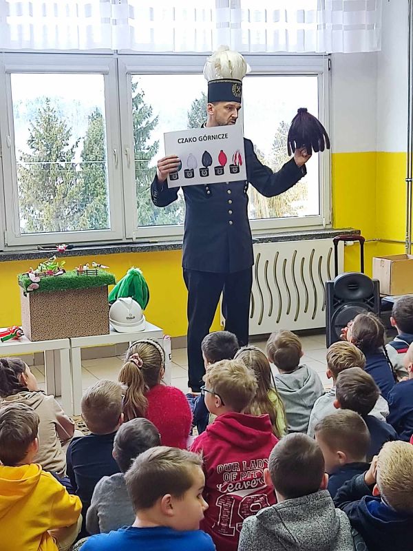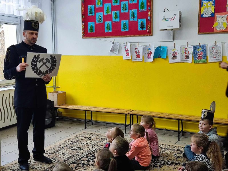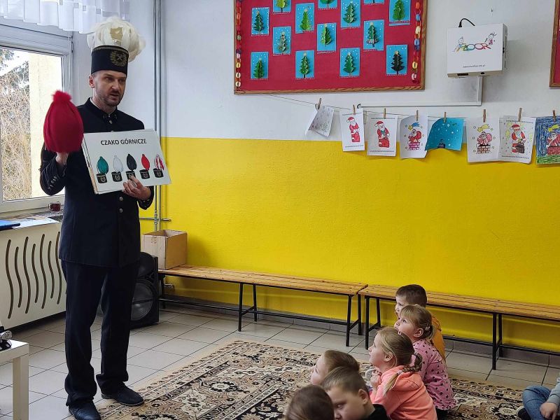 11 grudnia 2023 r. uczniowie klas młodszych wzięli udział w spotkaniu z górnikiem, w związku z przypadającym na 4 grudnia świętem górników, obchodzonym od XIX wieku w dzień świętej Barbary. Jest to uroczysty dzień nie tylko dla pracowników górnictwa, ale także geologów oraz innych osób wykonujących zawody związane z poszukiwaniem paliw kopalnych. Pan Sebastian Wiatr opowiedział dzieciom o pracy górnika, pokazał "skarby ziemi", wyjaśnił również, co oznaczają symbole związane z przemysłem górniczym np. pióropusz na czapce. Dzieci z ciekawością wysłuchały Pana Sebastiana, miały też okazję zadać górnikowi pytania oraz, co najważniejsze, mogły przymierzyć jego czapkę.