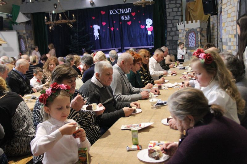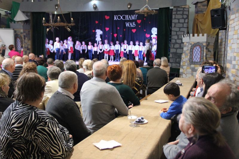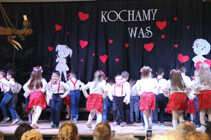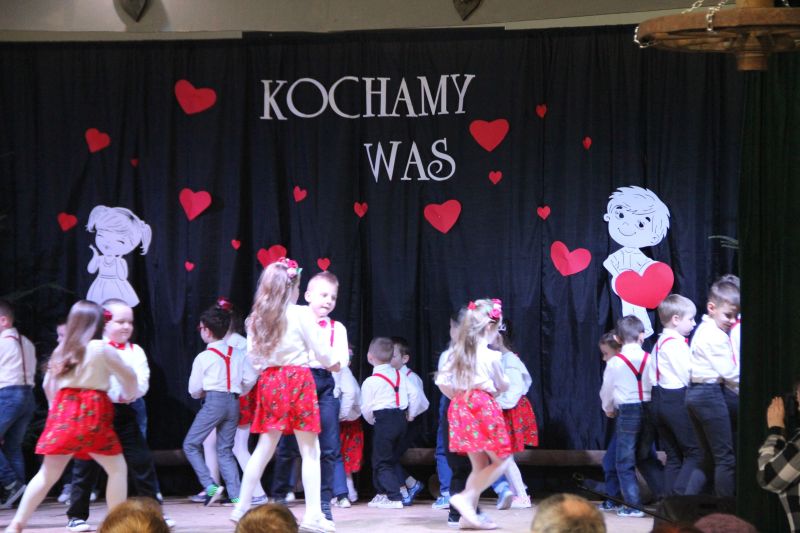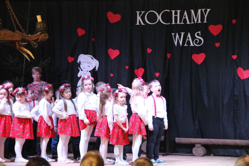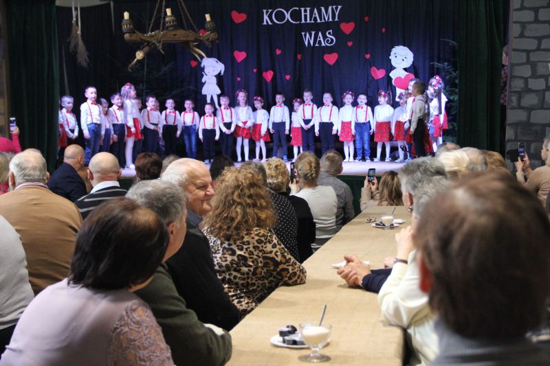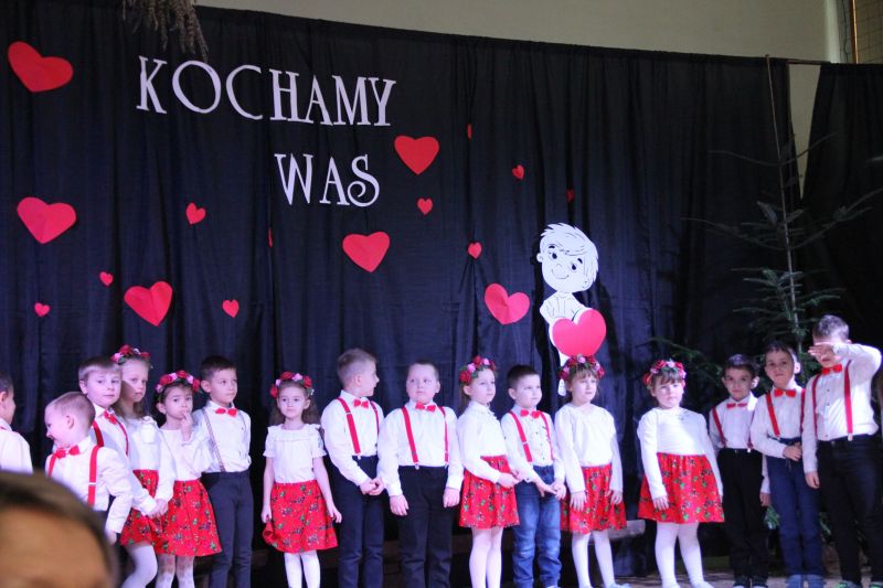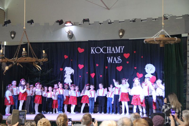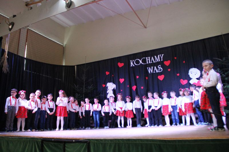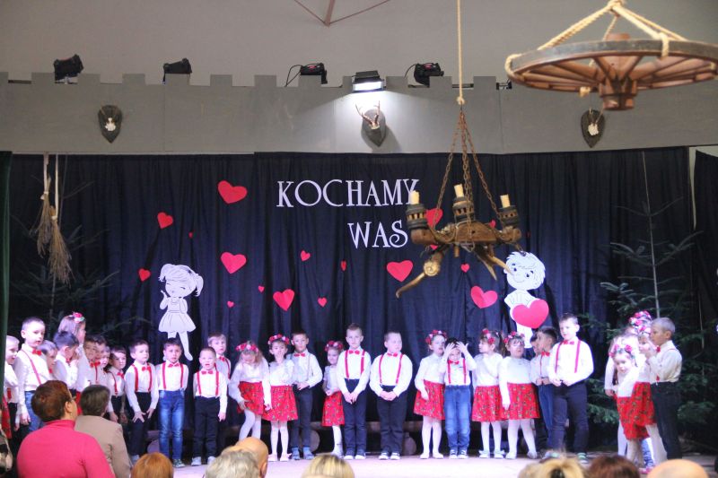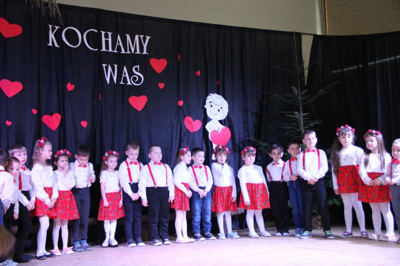 „Kochamy Was” - pod takim hasłem przedszkolaki przygotowały program artystyczny dla swoich Babć i Dziadków, którzy licznie przybyli na tę uroczystość. W obchodach tego pełnego miłości święta wzięli również udział Pan Dyrektor Wiesław Jedziniak oraz Pani Wicedyrektor Beata Biernacka. Przedszkolaki z grupy 0 A i B zaprezentowały zaproszonym gościom wiersze, piosenki oraz taniec. Mimo tremy młodzi artyści wypadli doskonale, a trud przygotowań został nagrodzony brawami wszystkich obecnych na sali widzów. Po występie dzieci złożyły dziadkom osobiste życzenia i wręczyły własnoręcznie ozdobione ramki ze swoim zdjęciem. Program przygotowały wychowawczynie - Pani Monika Liszka i Pani Lucyna Rusztowicz.