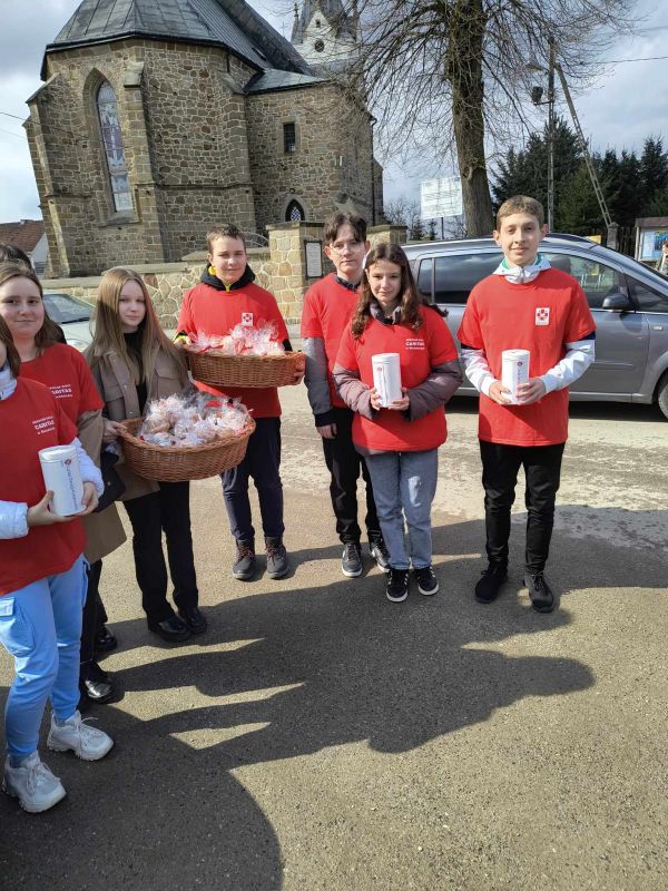 24 marca 2024 roku wolontariusze Szkolnego Koła Caritas zorganizowali kwestę na leczenie poważnie chorego Marcela - ucznia klasy 4 z Brzyszczek. Uczniowie naszej szkoły pod opieką Pani Wicedyrektor Beaty Biernackiej, Pani Elżbiety Tutaj oraz Pani Małgorzaty Janik rozprowadzali pod kościołem babeczki wielkanocne, będące symbolicznymi cegiełkami na rzecz chorego Marcela. Nasza kwesta spotkała się z ogromnym wparciem mieszkańców, za co serdecznie dziękujemy! Wszystkie zebrane środki zostaną przekazane rodzinie Marcela. Pragniemy również podziękować pracownikom stołówki szkolnej za przygotowanie babeczek wielkanocnych, a tym samym za bezinteresowne włączenie się w naszą akcję.