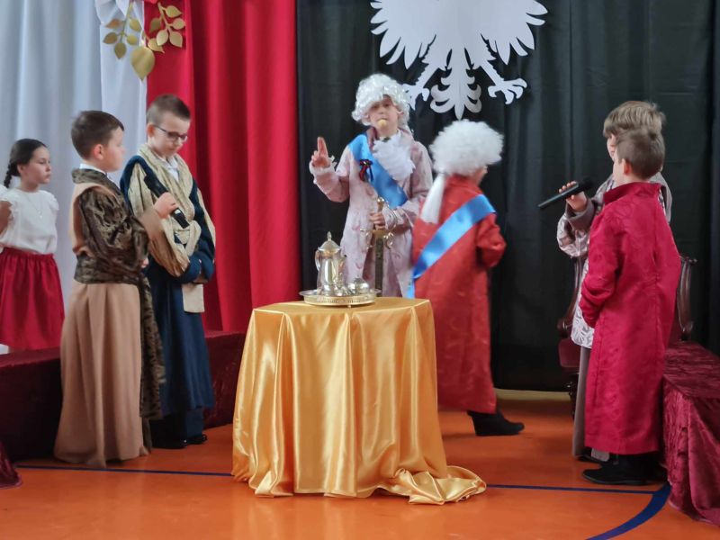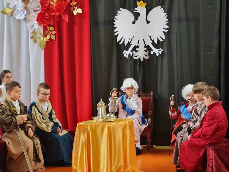 25 kwietnia 2024 roku społeczność szkolna wzięła udział w obchodach 233. Rocznicy Uchwalenia Konstytucji 3 Maja, będącej jednym z najważniejszych symboli niepodległości Polski. Pan Dyrektor Wiesław Jedziniak przypomniał uczniom najważniejsze fakty historyczne związane z uchwalaniem Konstytucji 3 Maja. Cytując słowa Jana Pawła II "Wolność jest człowiekowi dana i zadana" Pan Dyrektor podkreślił wagę tamtego wydarzenia na drodze Polski do niepodległości i demokracji.